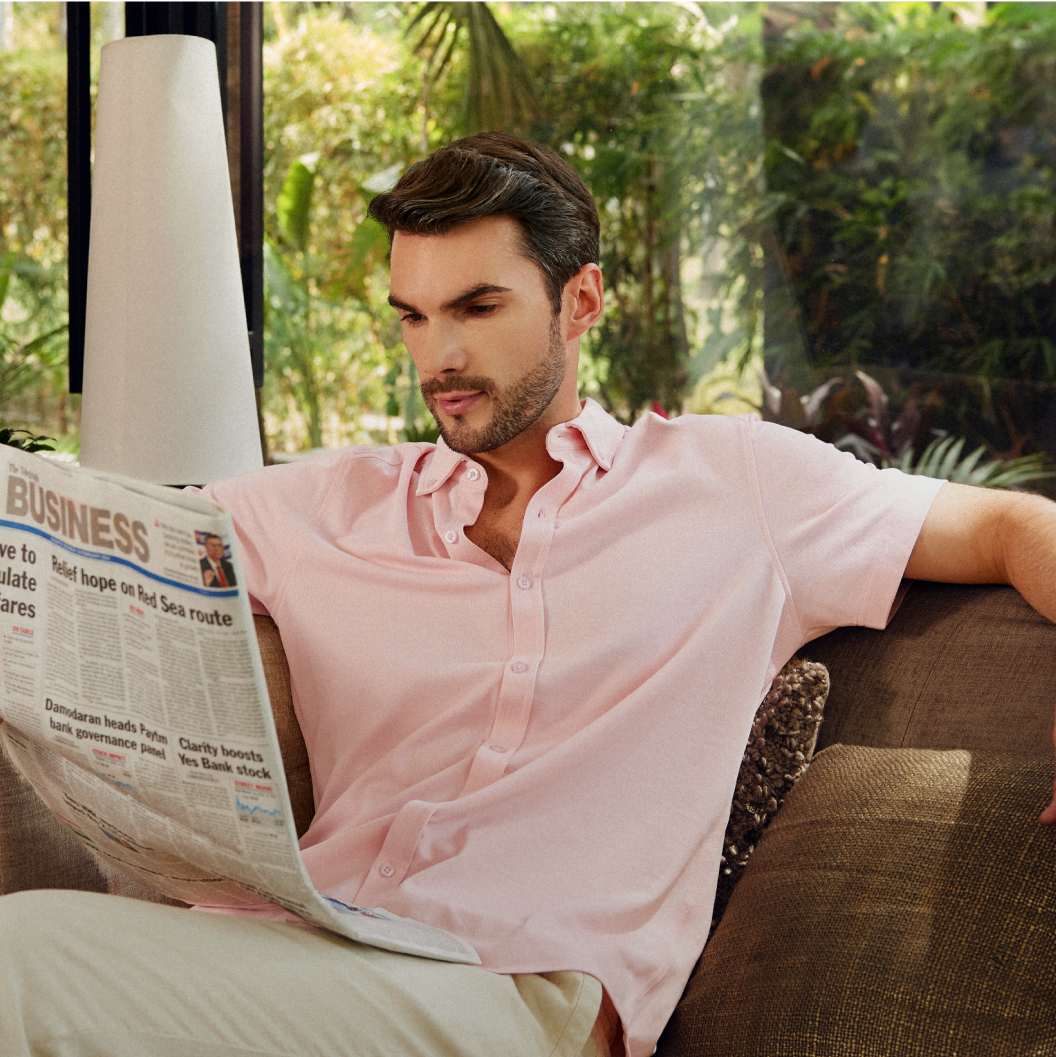 Knitique Men's Luxury Polo T-Shirt - Regular Fit Cotton Rich Tri-Blend Fabric - Oyster Powder Pink Oyster Powder Pink30% OFFRegular price ₹1,599.00Sale price ₹1,599.00 Regular priceUnit price / per₹2,299.00Sale