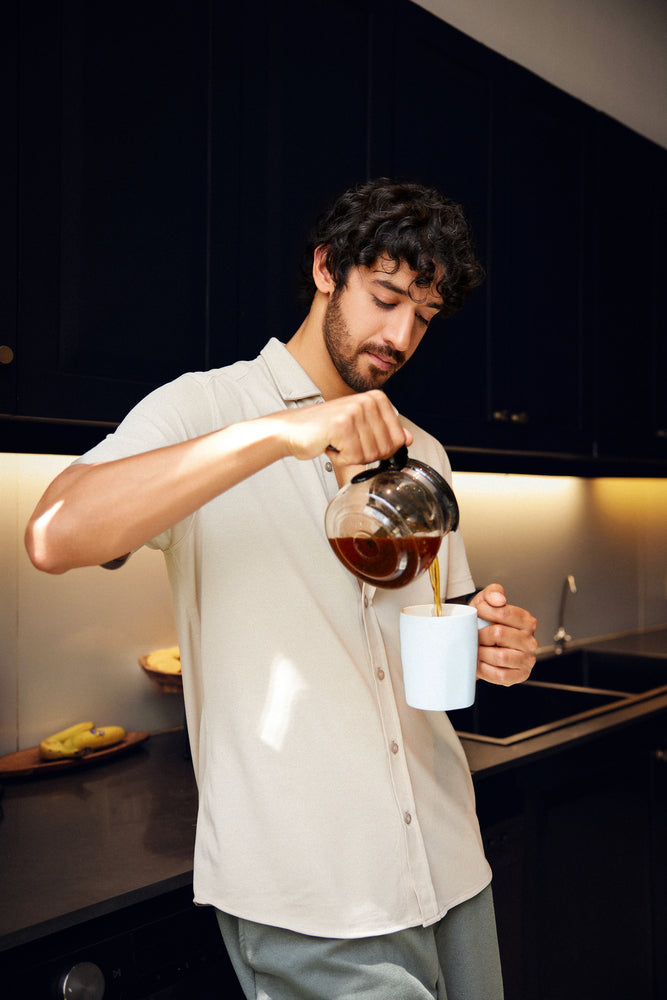 Eazy Knitique Oxford Shirt gives the look of a classic Oxford in a comfortable, stretchy knit fabric. This Shirt combines a tri-blend stretch pique for exceptional versatility, designed to be your favorite men's button down be it for work, travel or date night. We created this hybrid style to give you the highest level of comfort while looking sharp all day long. The premium fine pique knit with moisture management technology is ultra-light that keeps you super fresh and sweat free throughout the day and is designed to be worn either tucked in or un-tucked.
