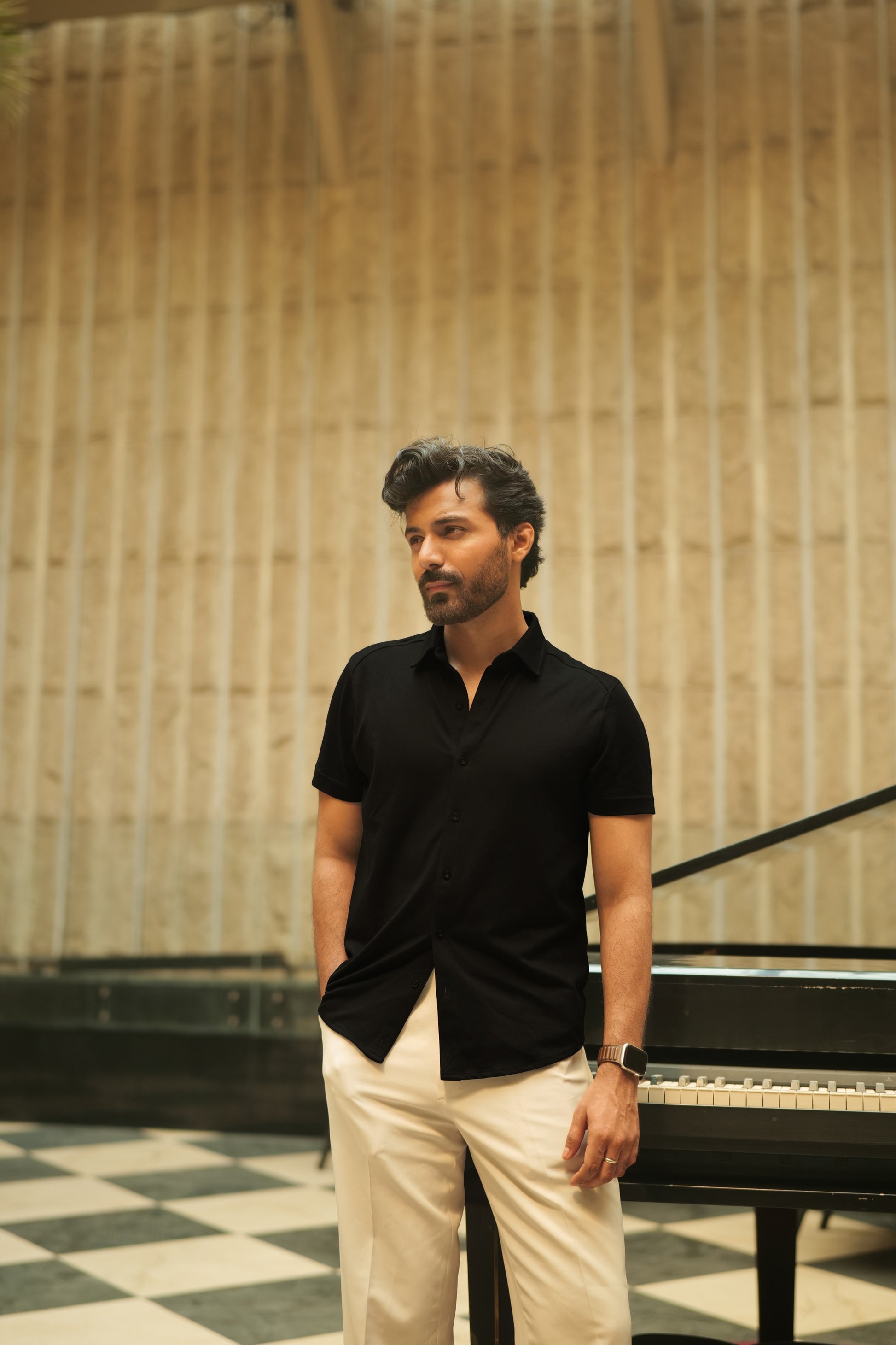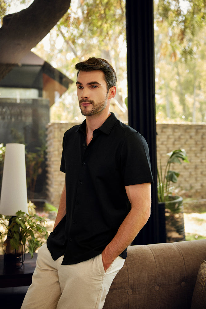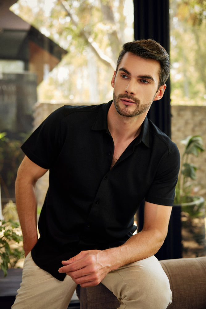 Knitique Men's All Day Half Sleeve Shirt - Regular Fit Cotton Rich Tri-Blend Fabric - Ebony Black