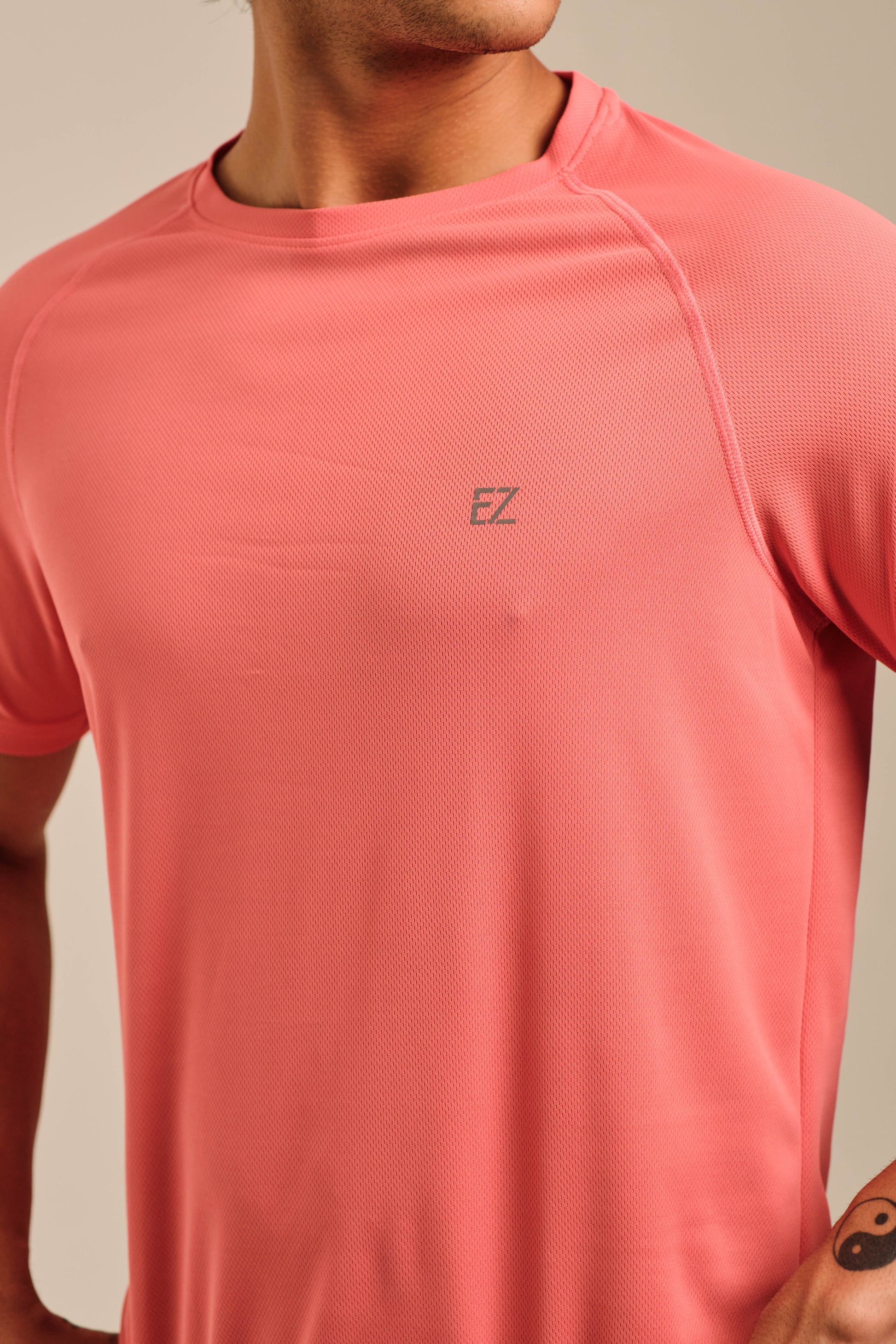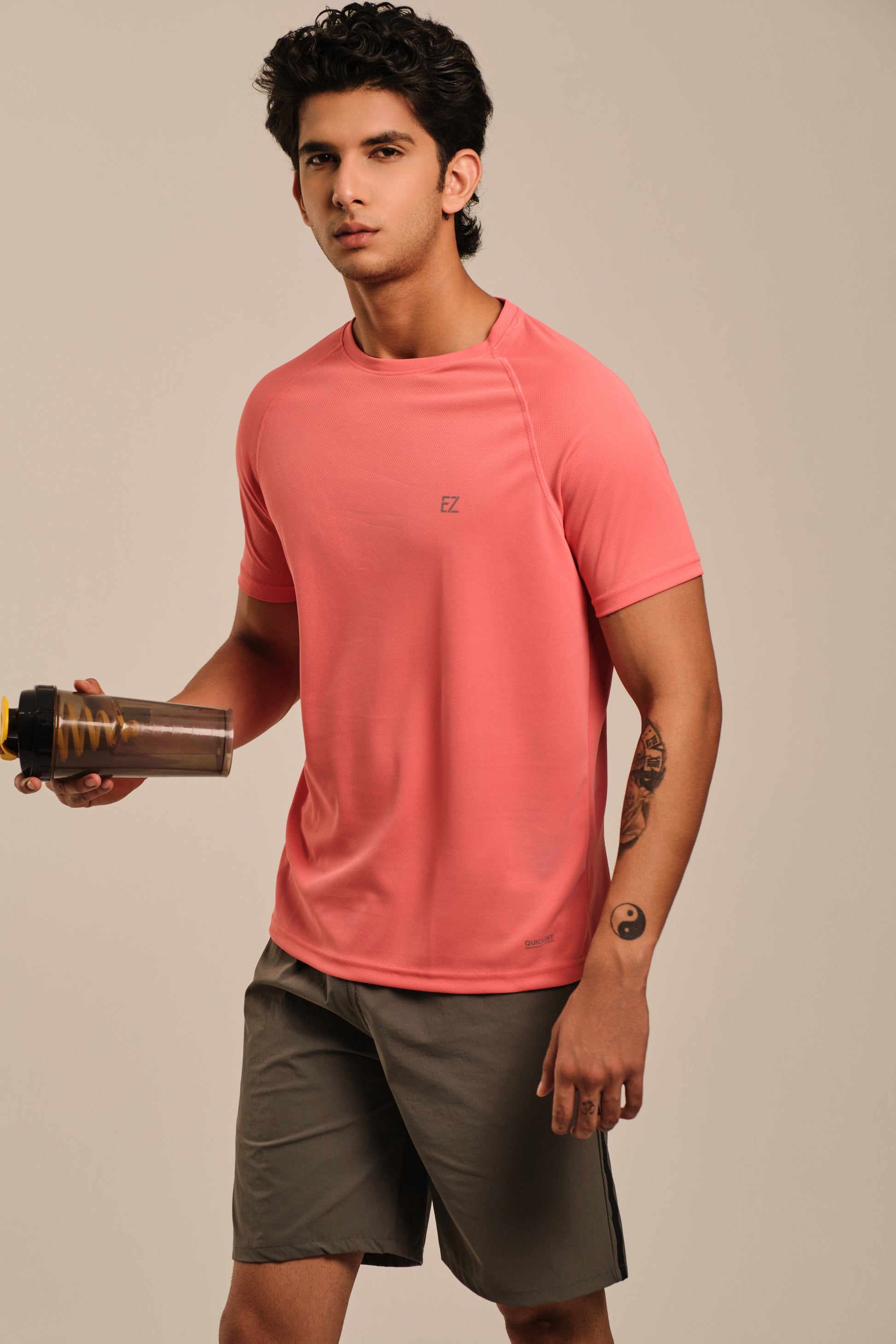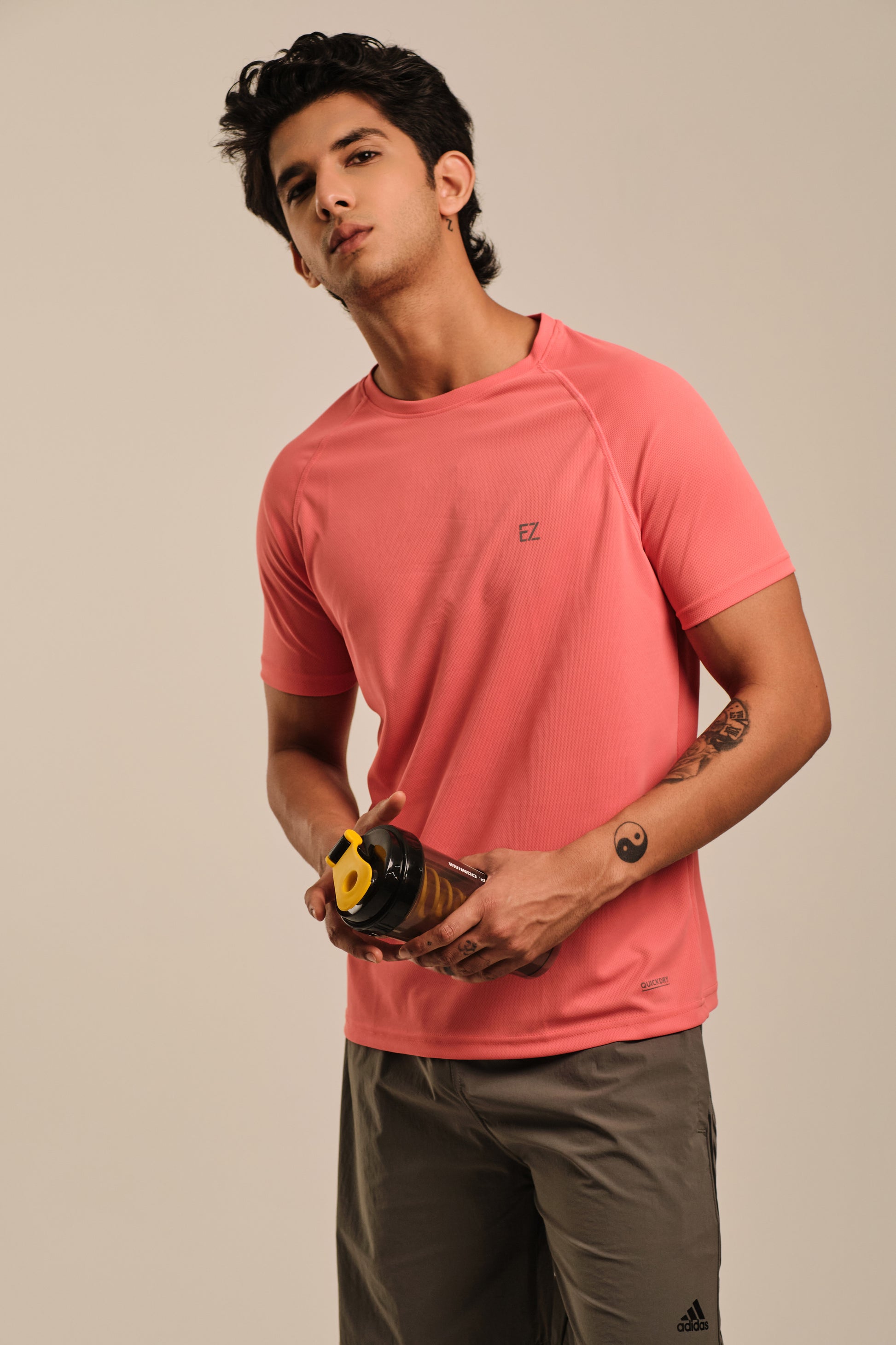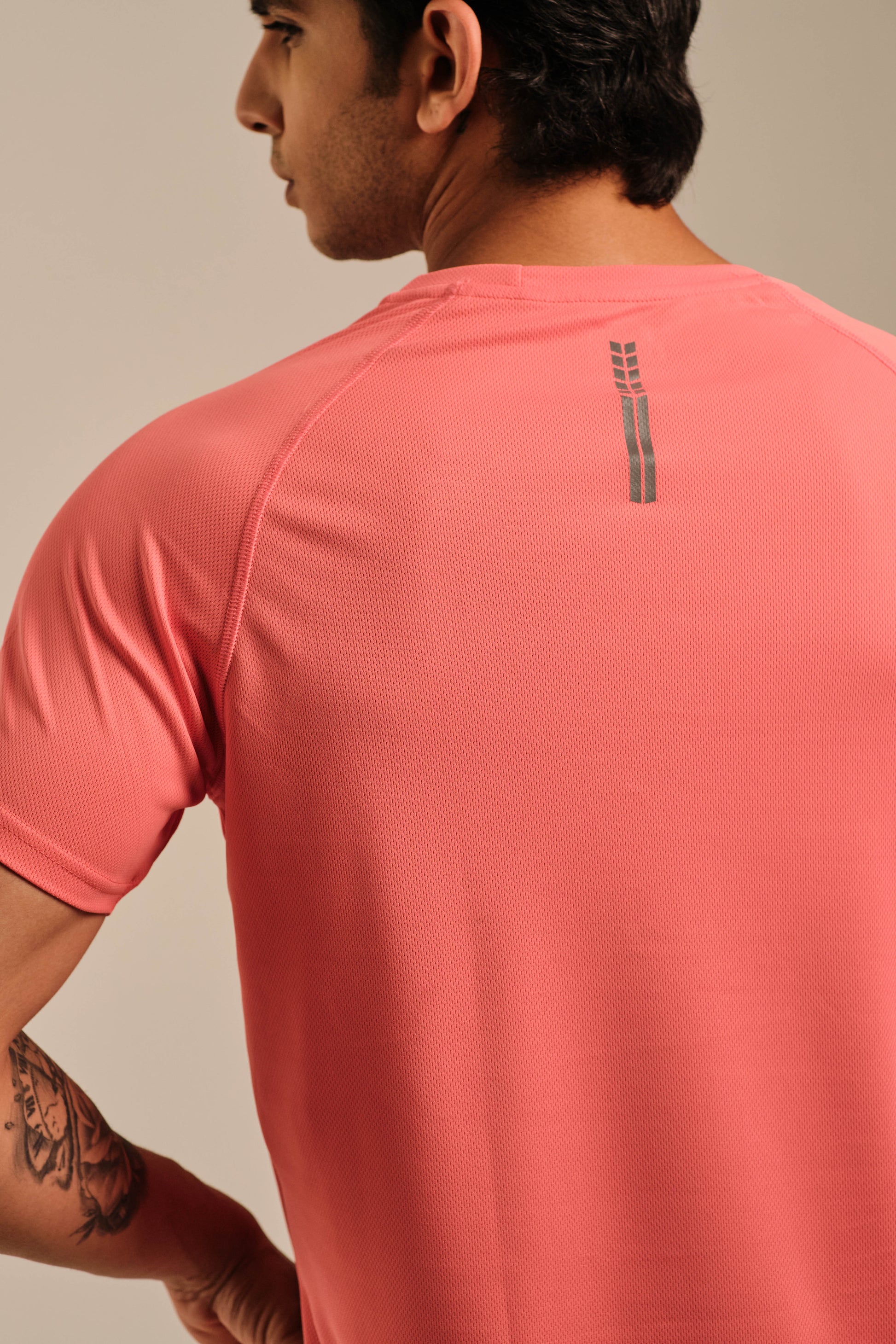 Men's Round Neck Quick Dry T-shirt - Regular Fit Micro Polyester - Sunset Coral