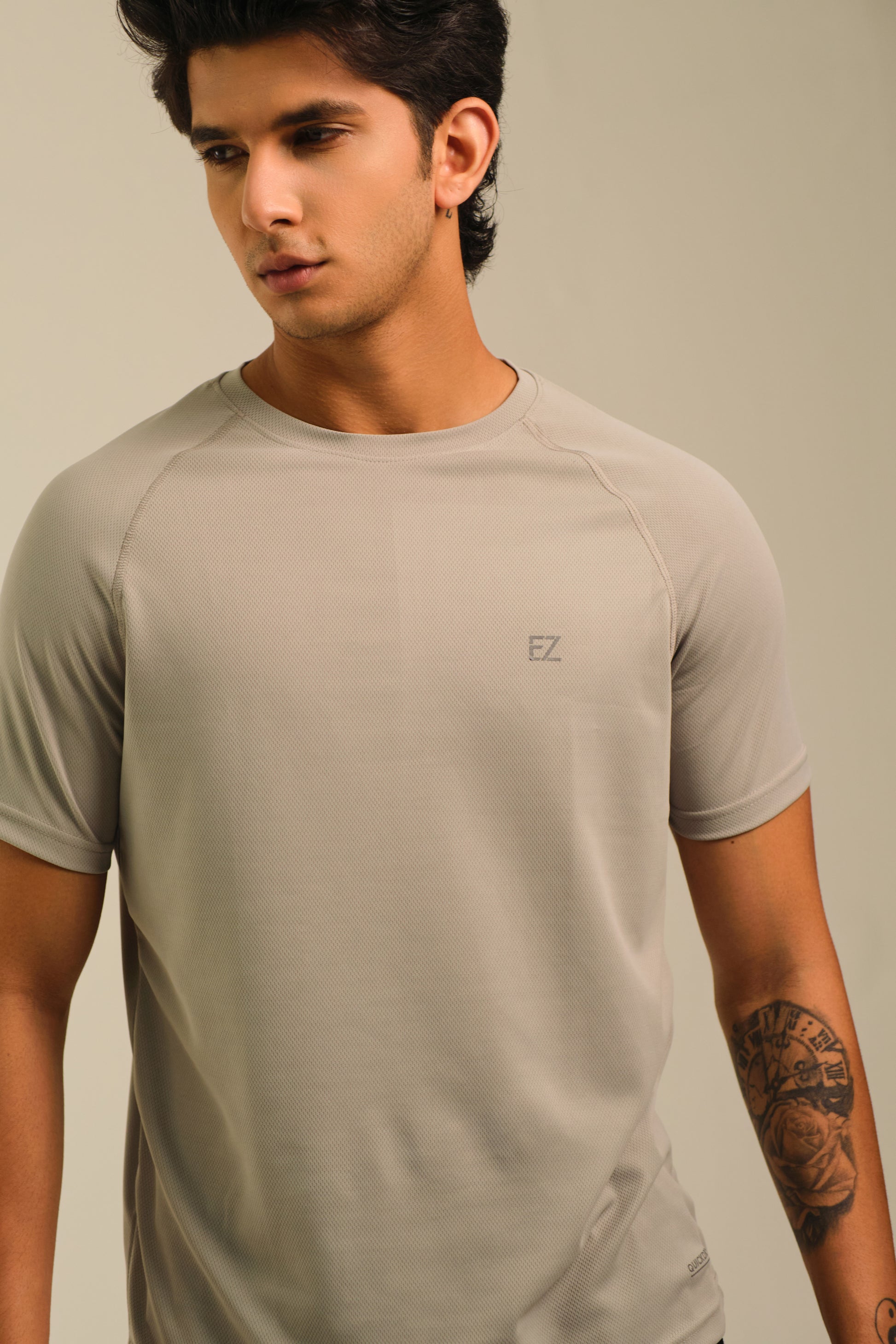 Men's Round Neck Quick Dry T-shirt - Regular Fit Micro Polyester - Pearl Grey