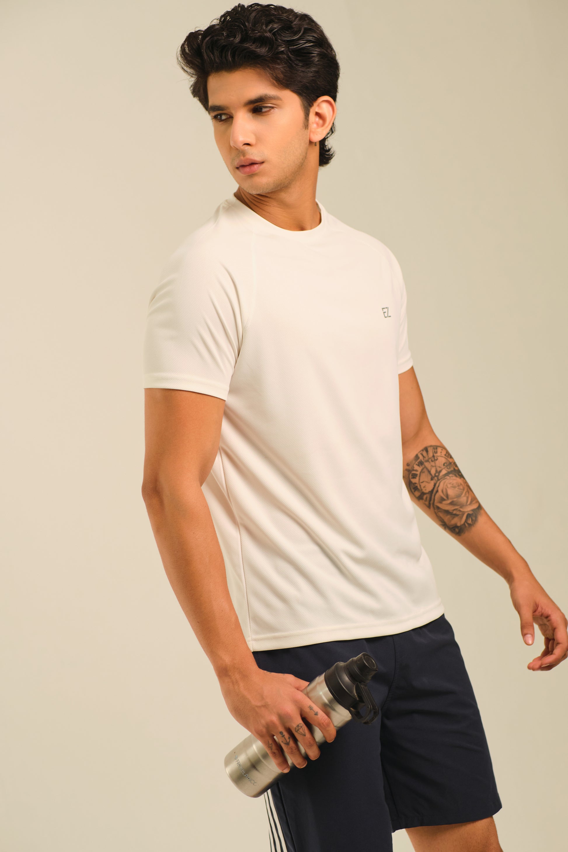 Men's Round Neck Quick Dry T-shirt - Regular Fit Micro Polyester - Arctic White