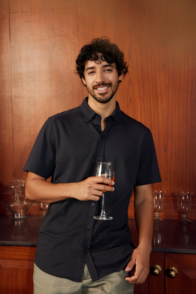 Eazy Knitique Oxford Shirt gives the look of a classic Oxford in a comfortable, stretchy knit fabric. This Shirt combines a tri-blend stretch pique for exceptional versatility, designed to be your favorite men's button down be it for work, travel or date night. We created this hybrid style to give you the highest level of comfort while looking sharp all day long. The premium fine pique knit with moisture management technology is ultra-light that keeps you super fresh and sweat free throughout the day and is designed to be worn either tucked in or un-tucked.
