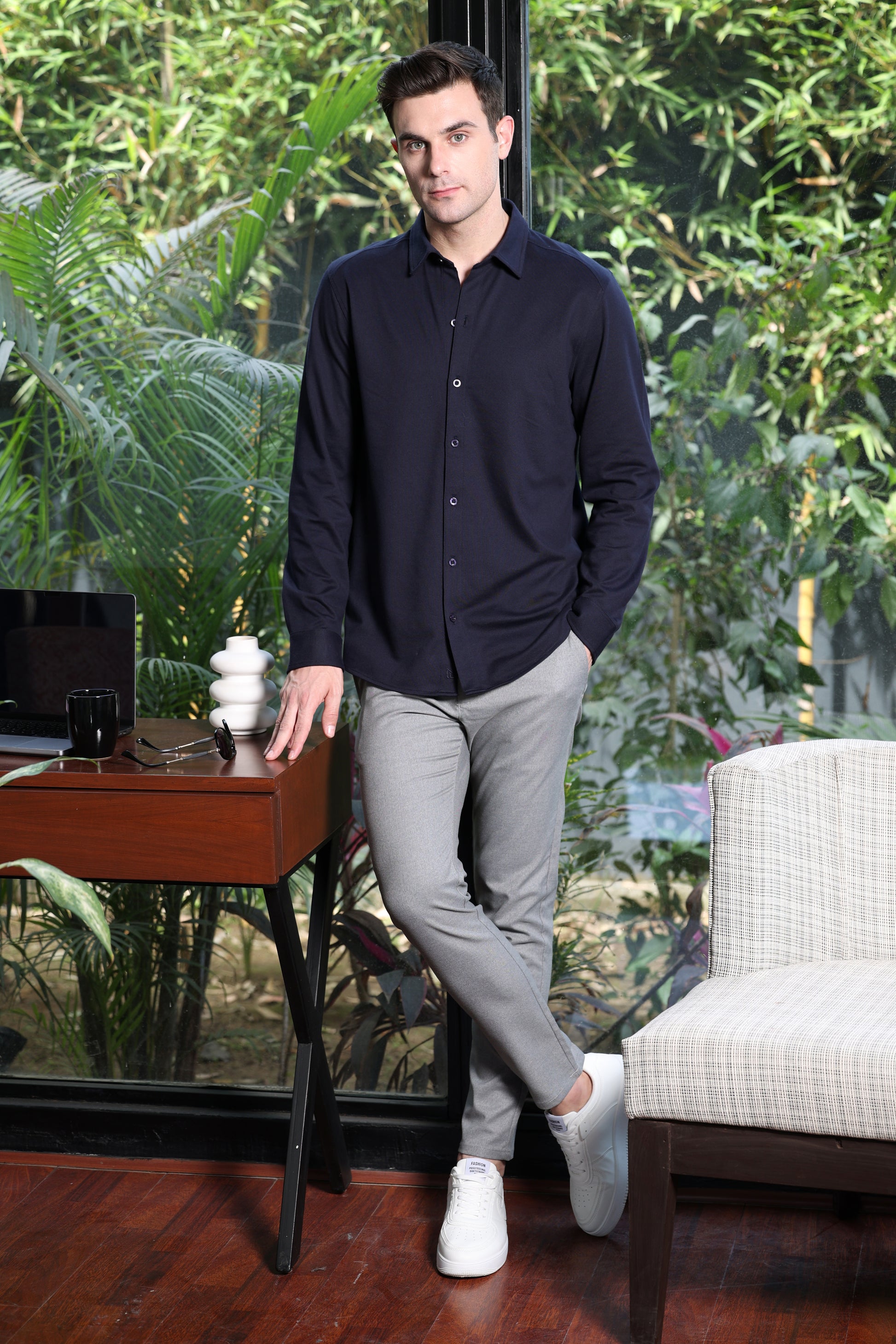 Eazy Knitique All Day shirts are a perfect balance of sophistication and casualness, making them a versatile and stylish addition to any man's wardrobe. The unique texture adds depth to the look and can elevate a simple outfit. The premium fine pique knit with moisture management technology is ultra-light that keeps you super fresh and sweat free throughout the day. Designed to be worn either tucked in or un-tucked, we created this hybrid style to give you the highest level of comfort while looking sharp all day long.