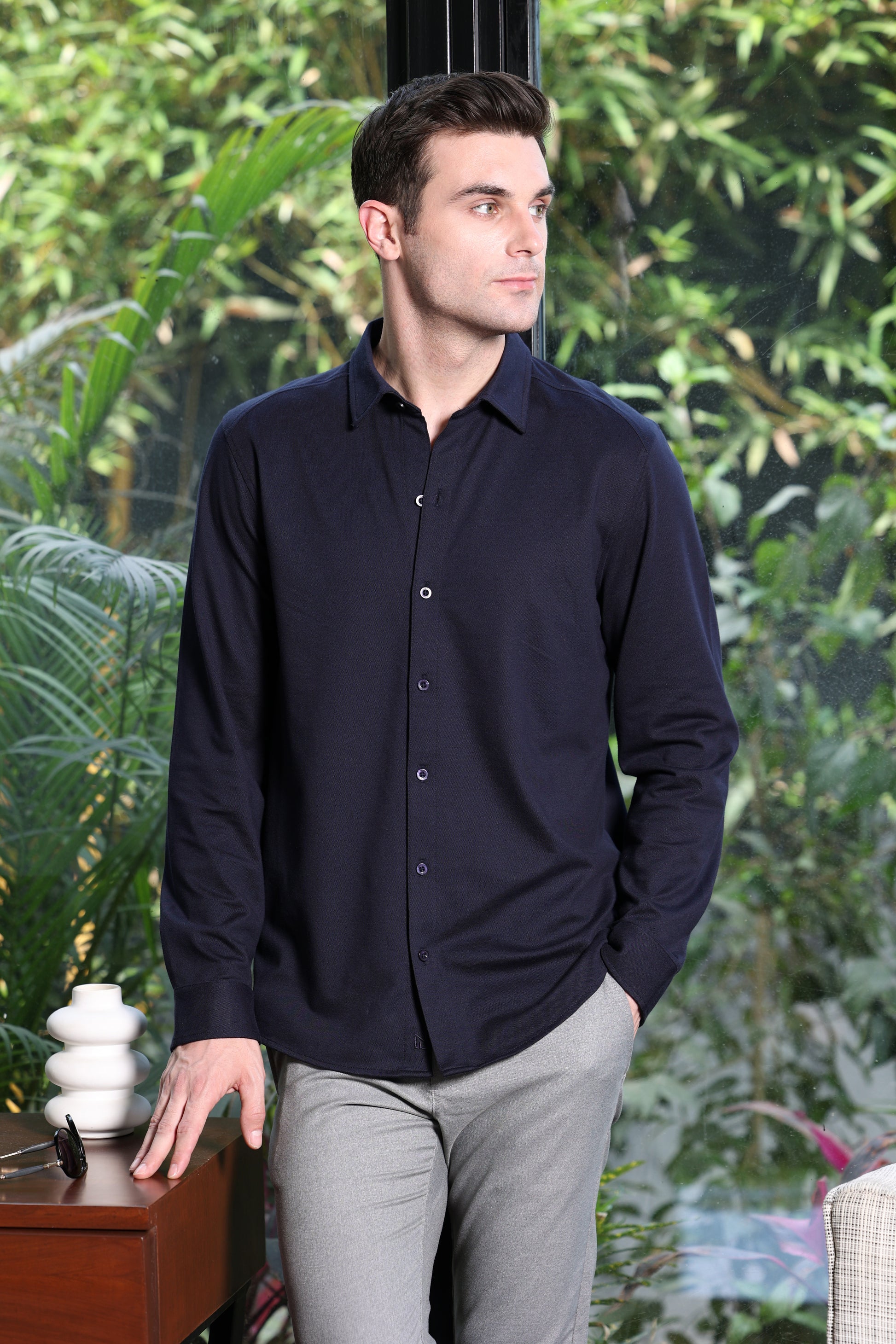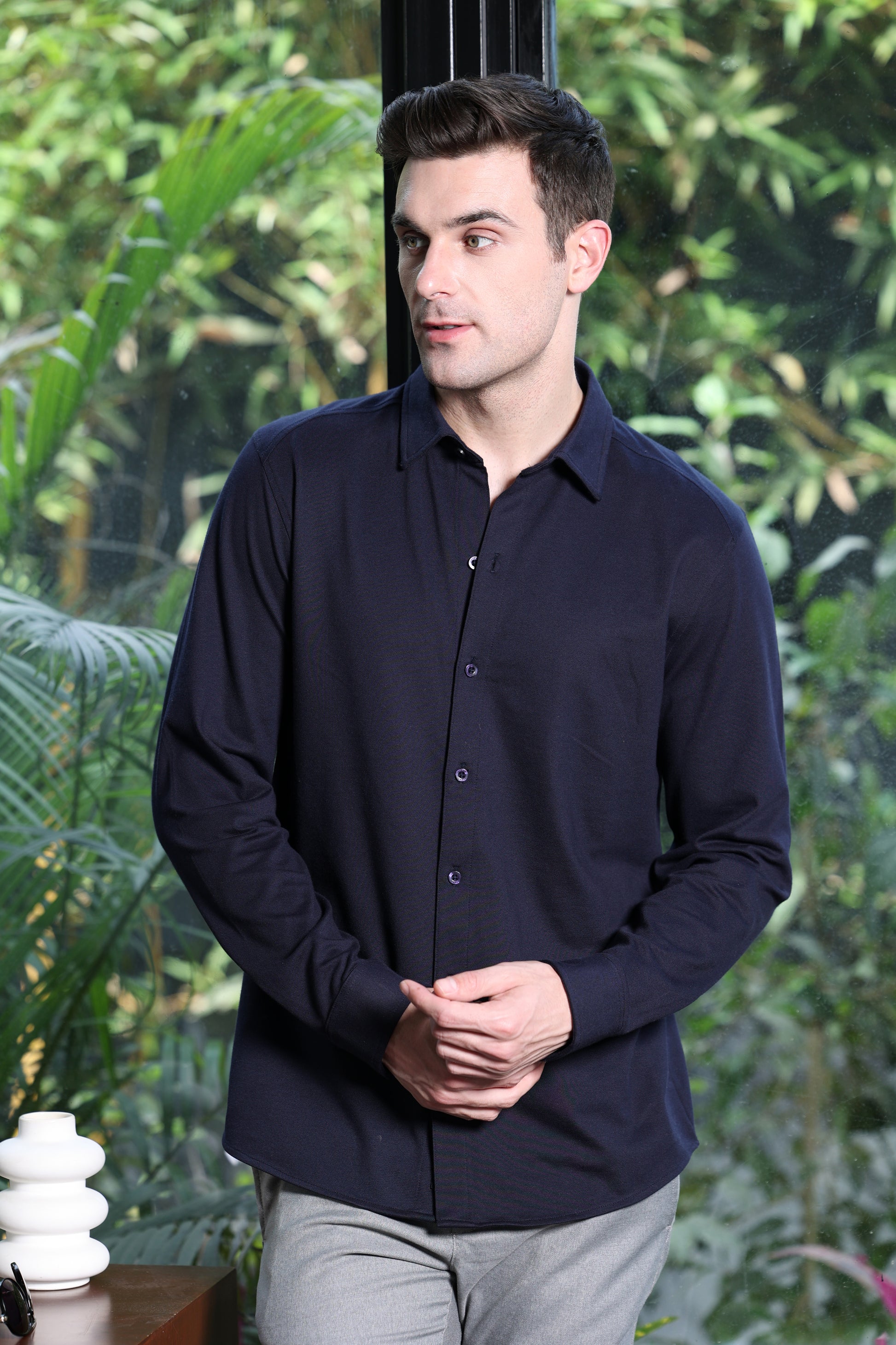 Knitique Men's All Day Full Sleeve Shirt - Regular Fit Cotton Rich Tri-Blend Fabric - Midnight Navy