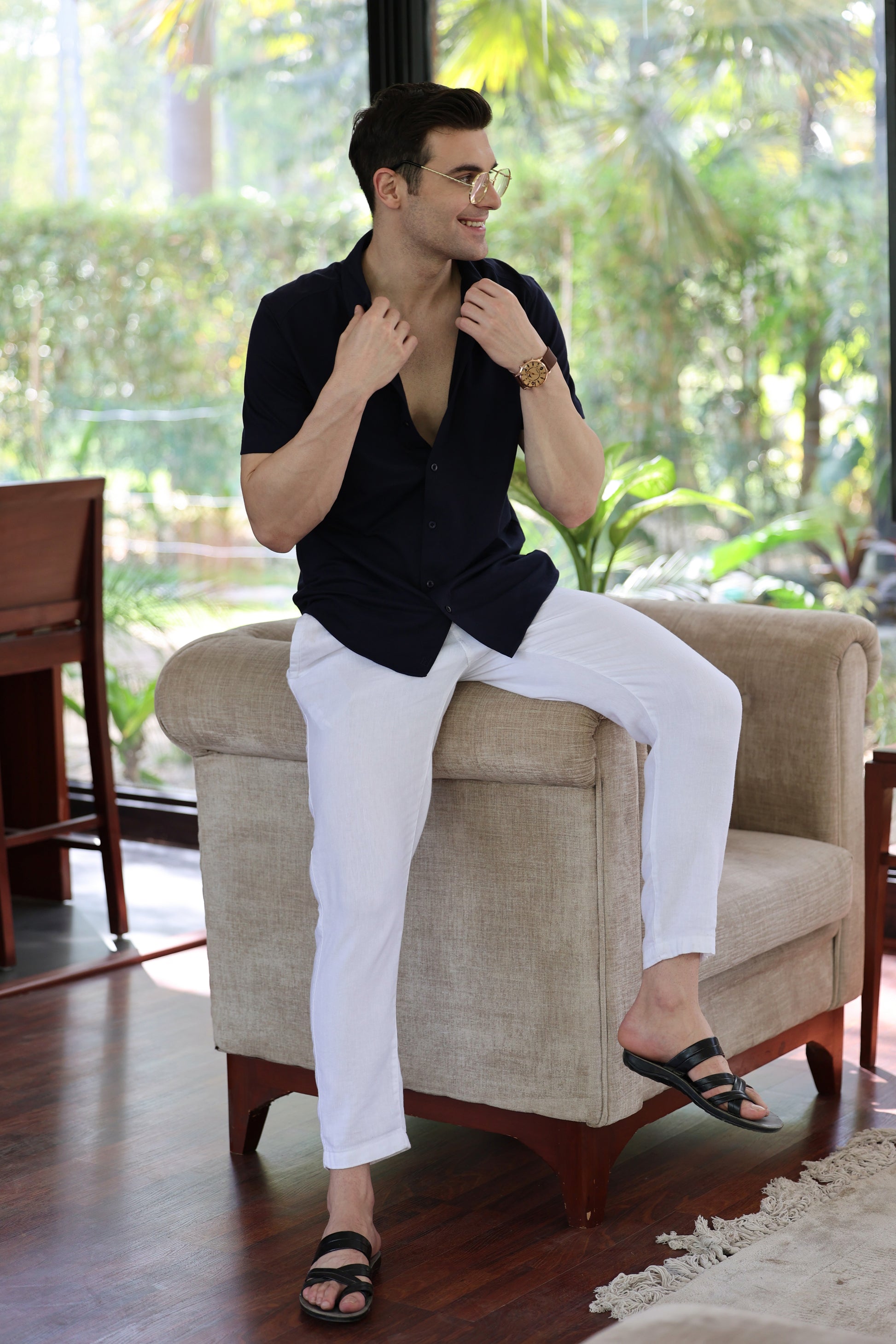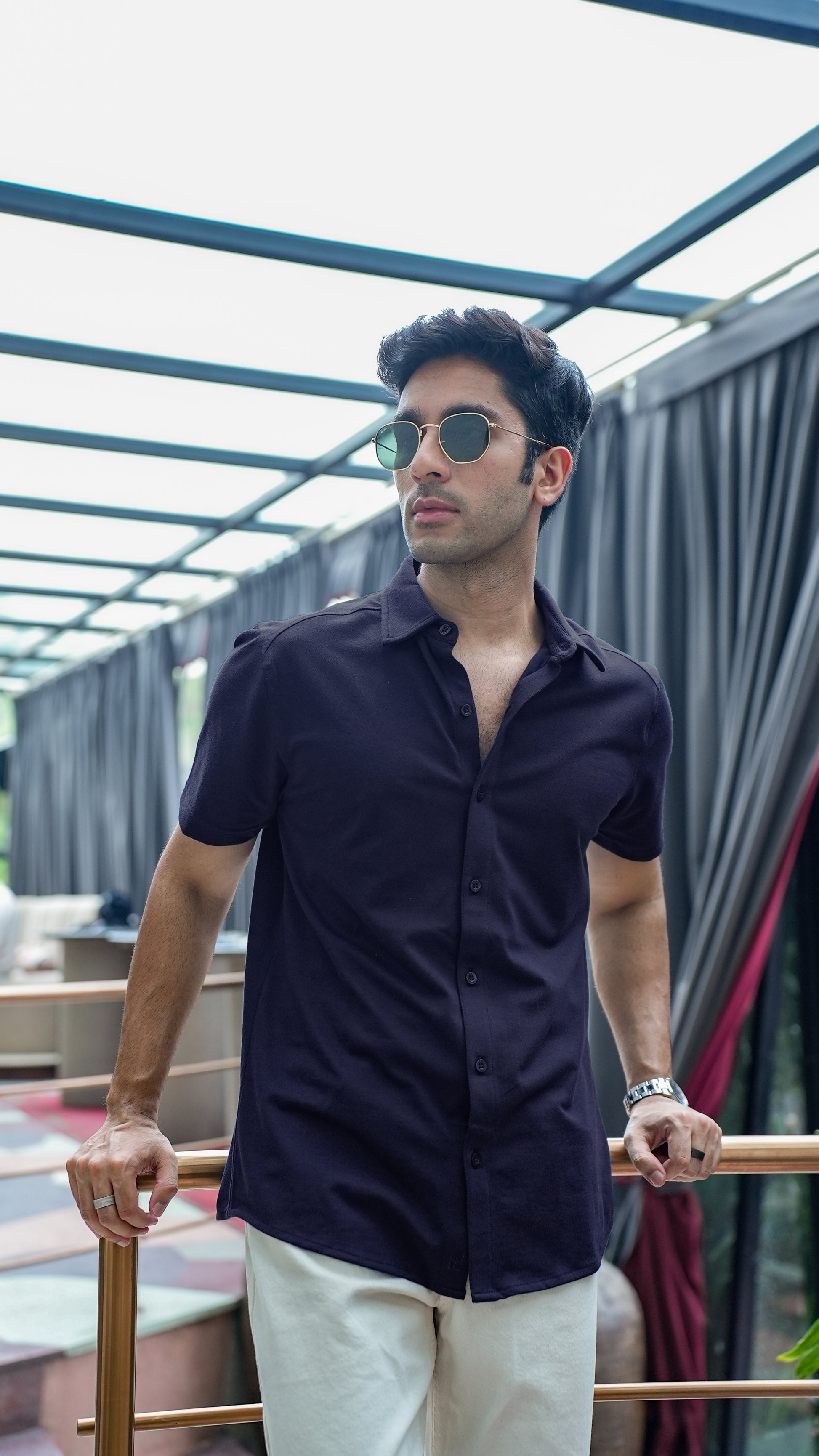 Knitique Men's All Day Half Sleeve Shirt - Regular Fit Cotton Rich Tri-Blend Fabric - Midnight Navy