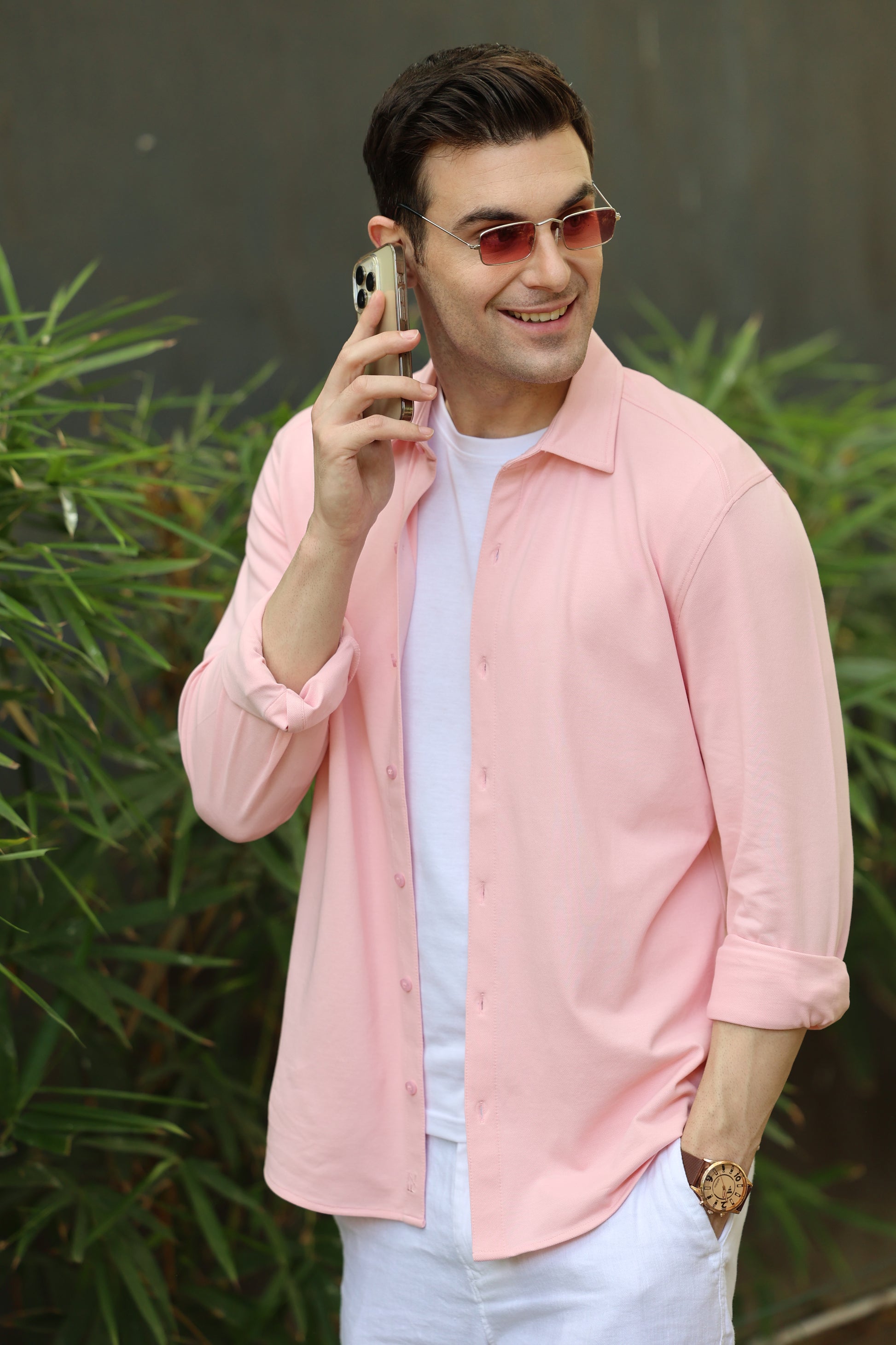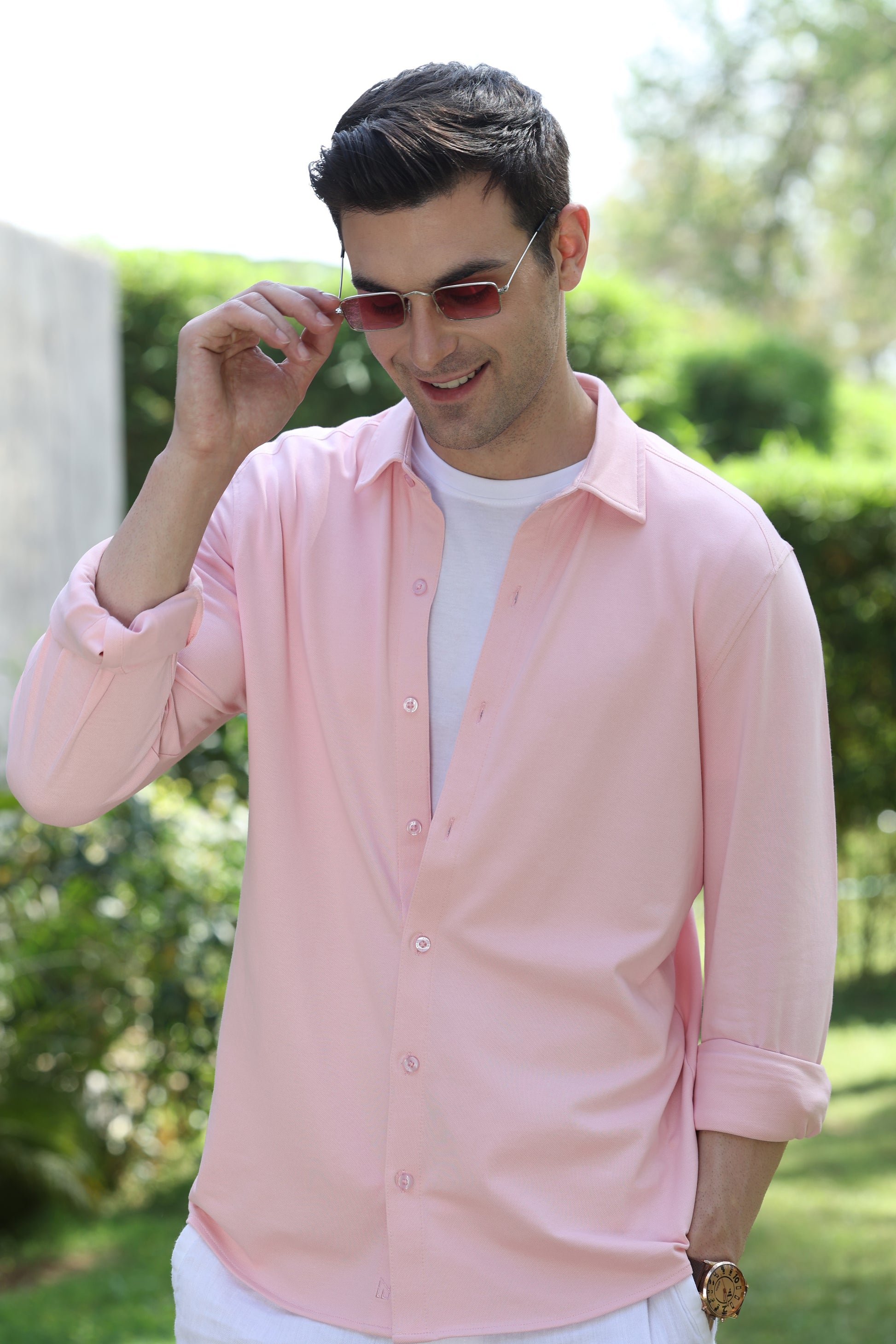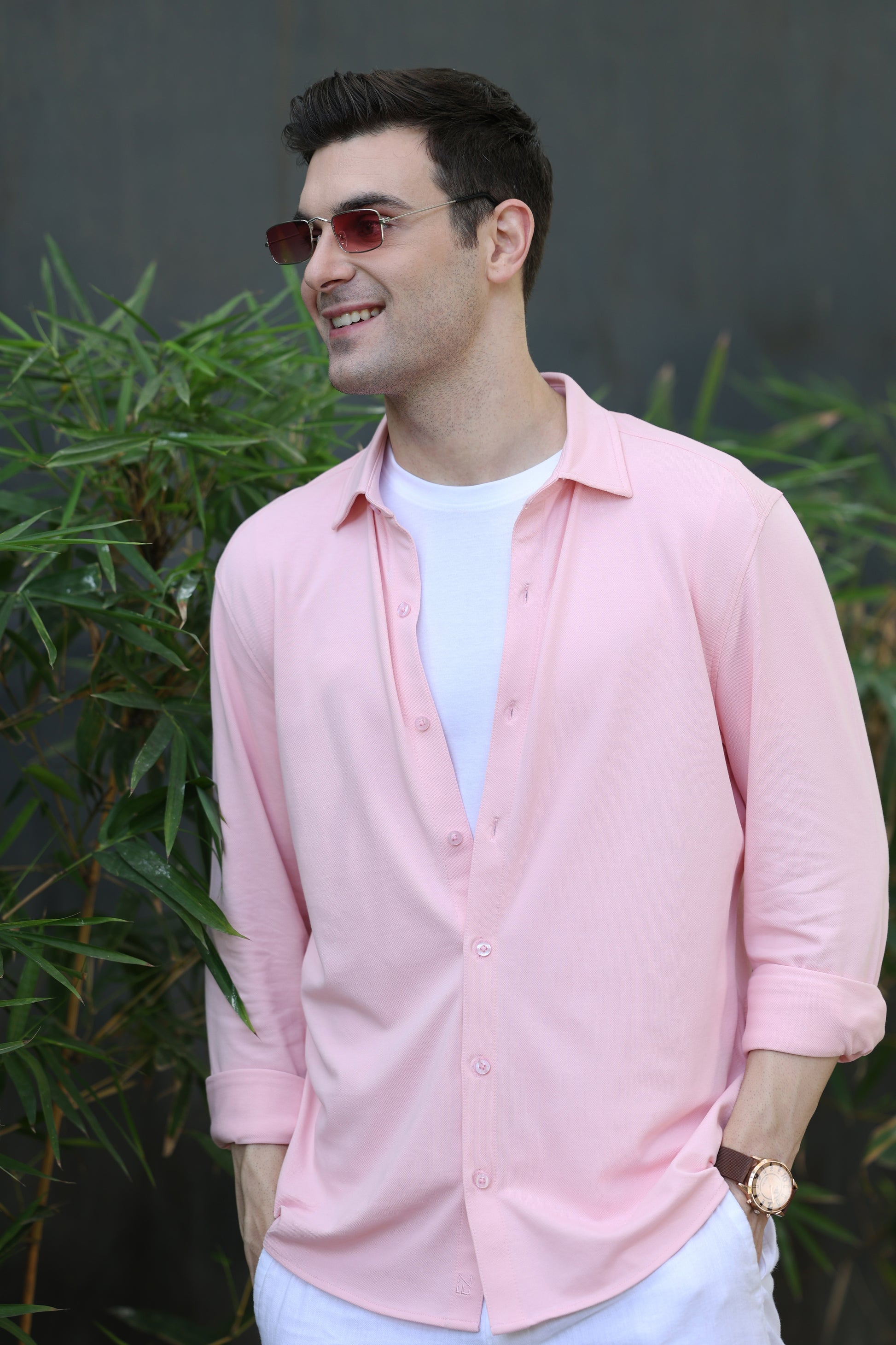 Knitique Men's All Day Full Sleeve Shirt - Regular Fit Cotton Rich Tri-Blend Fabric - Oyster Powder Pink