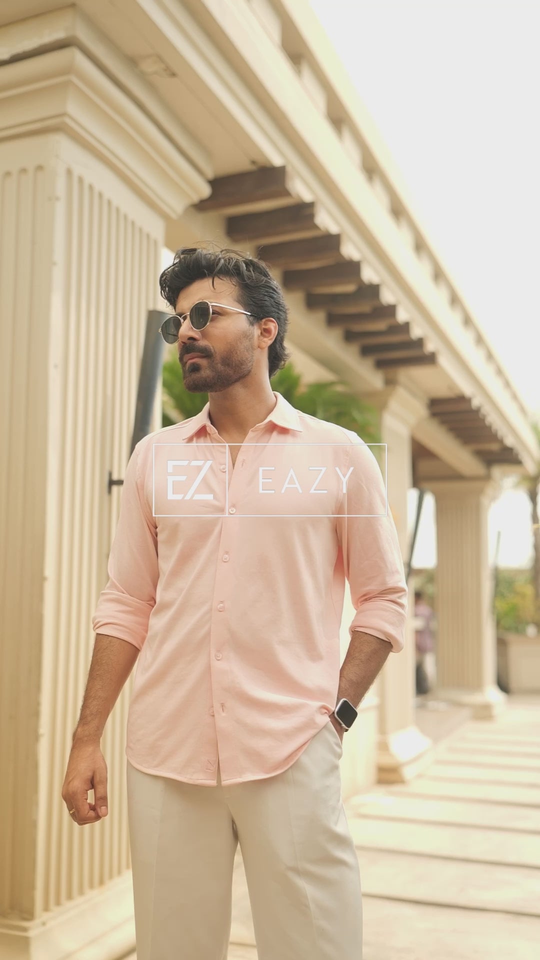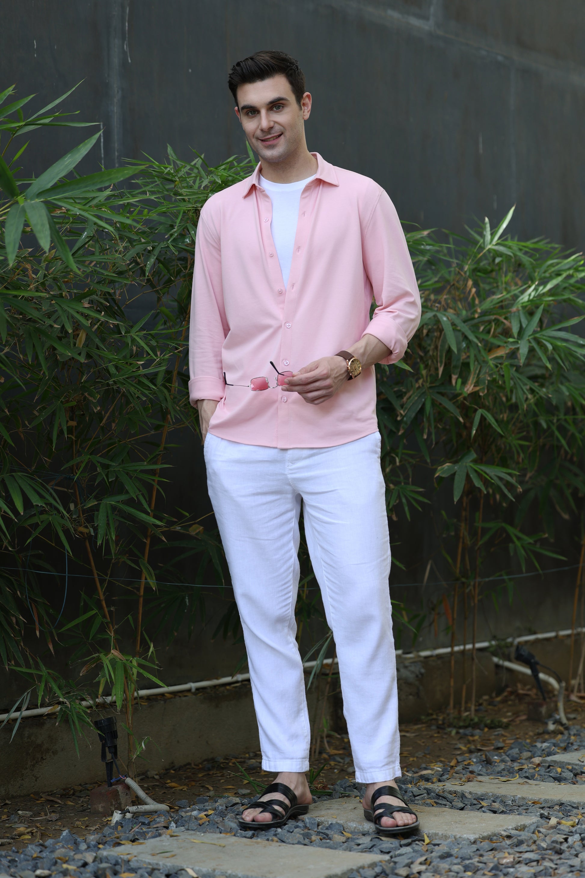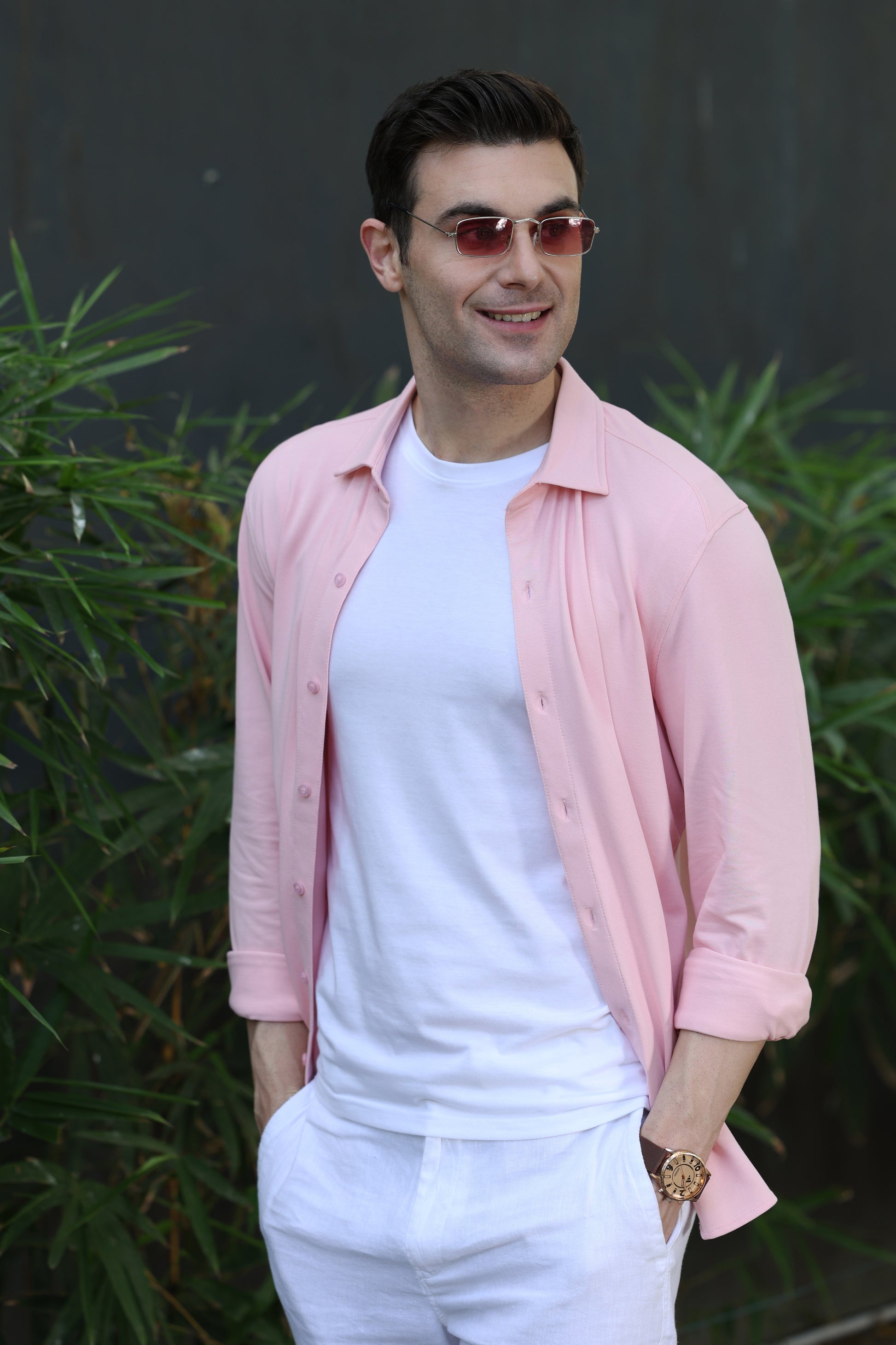 Knitique Men's All Day Full Sleeve Shirt - Regular Fit Cotton Rich Tri-Blend Fabric - Oyster Powder Pink