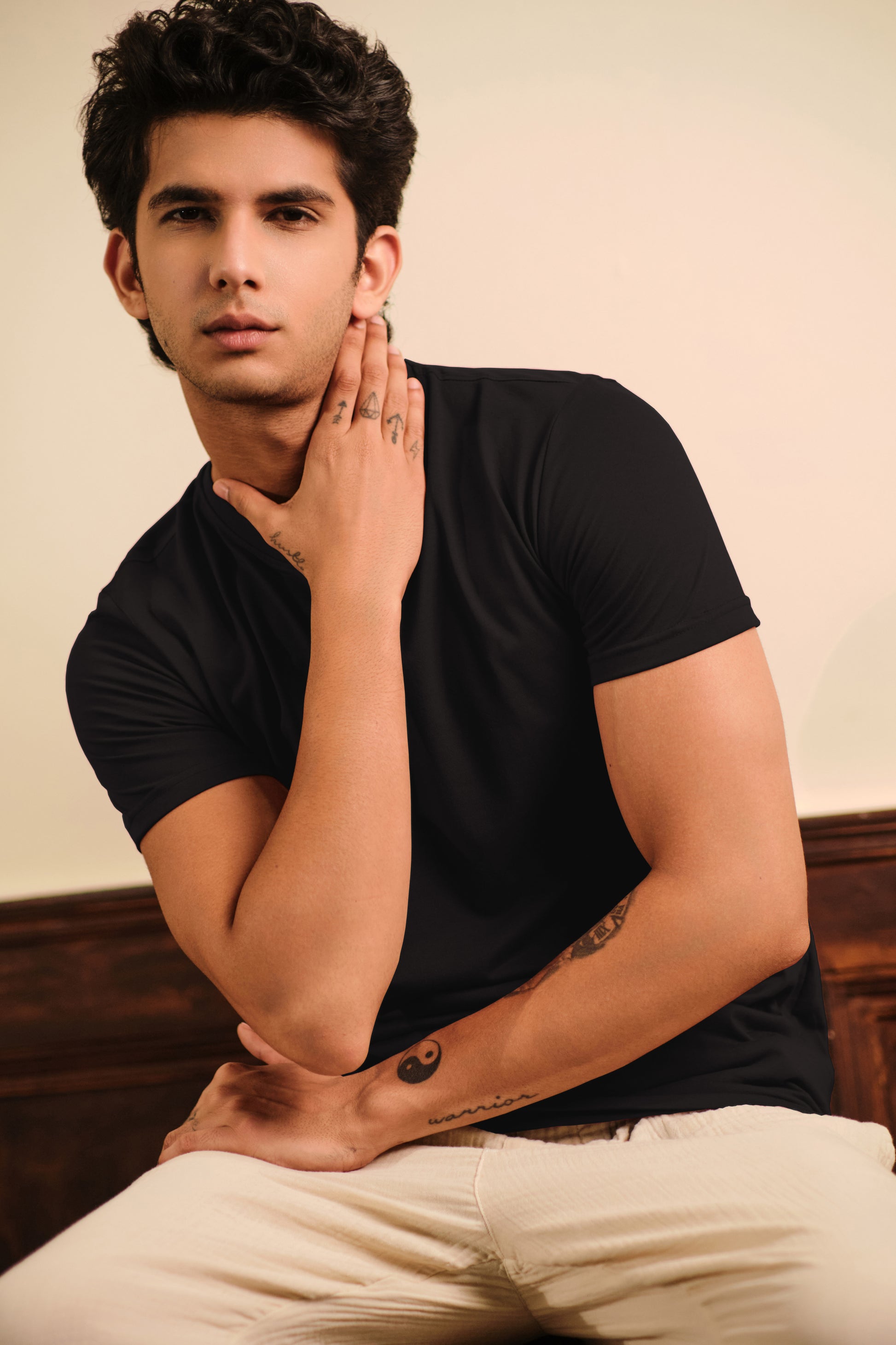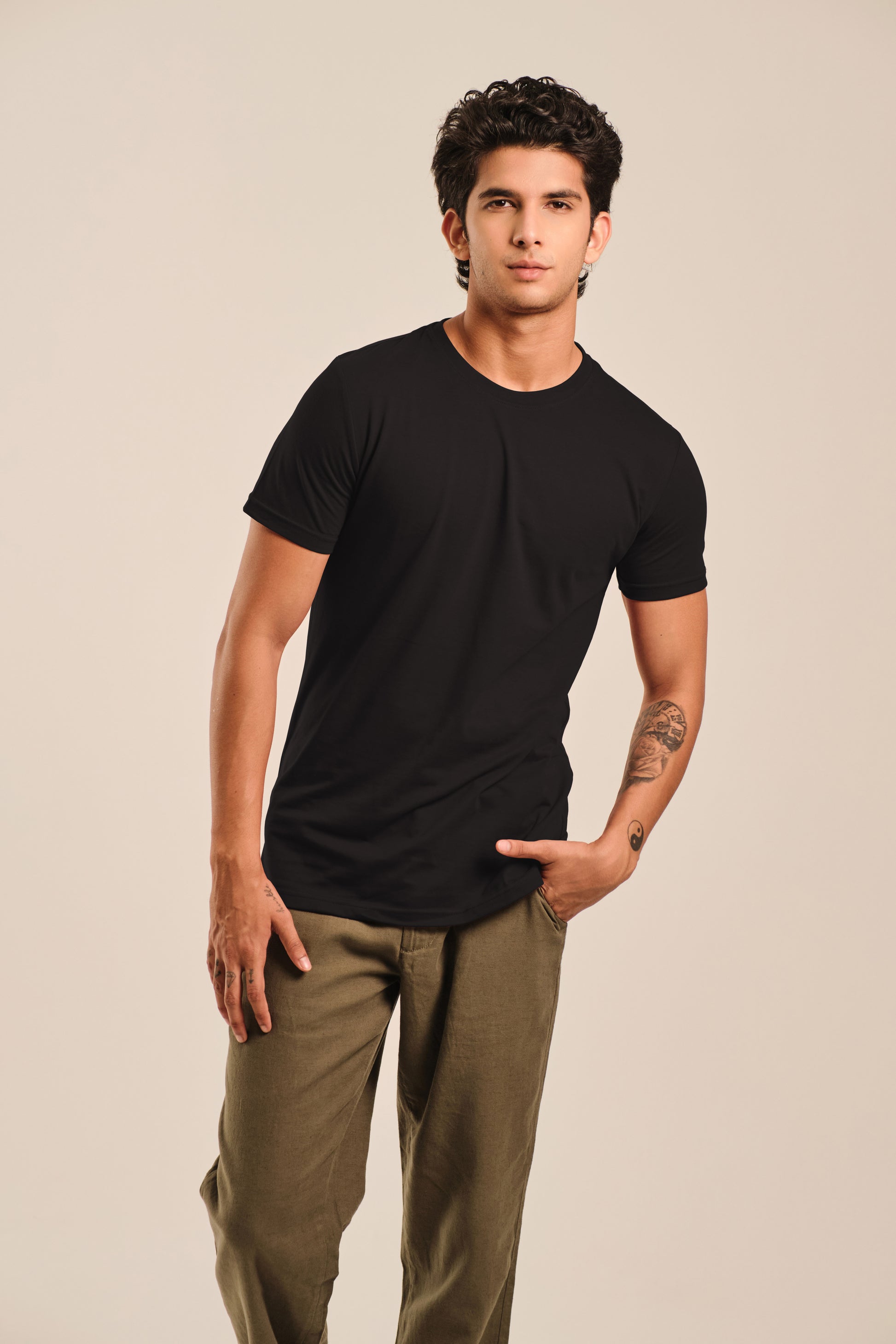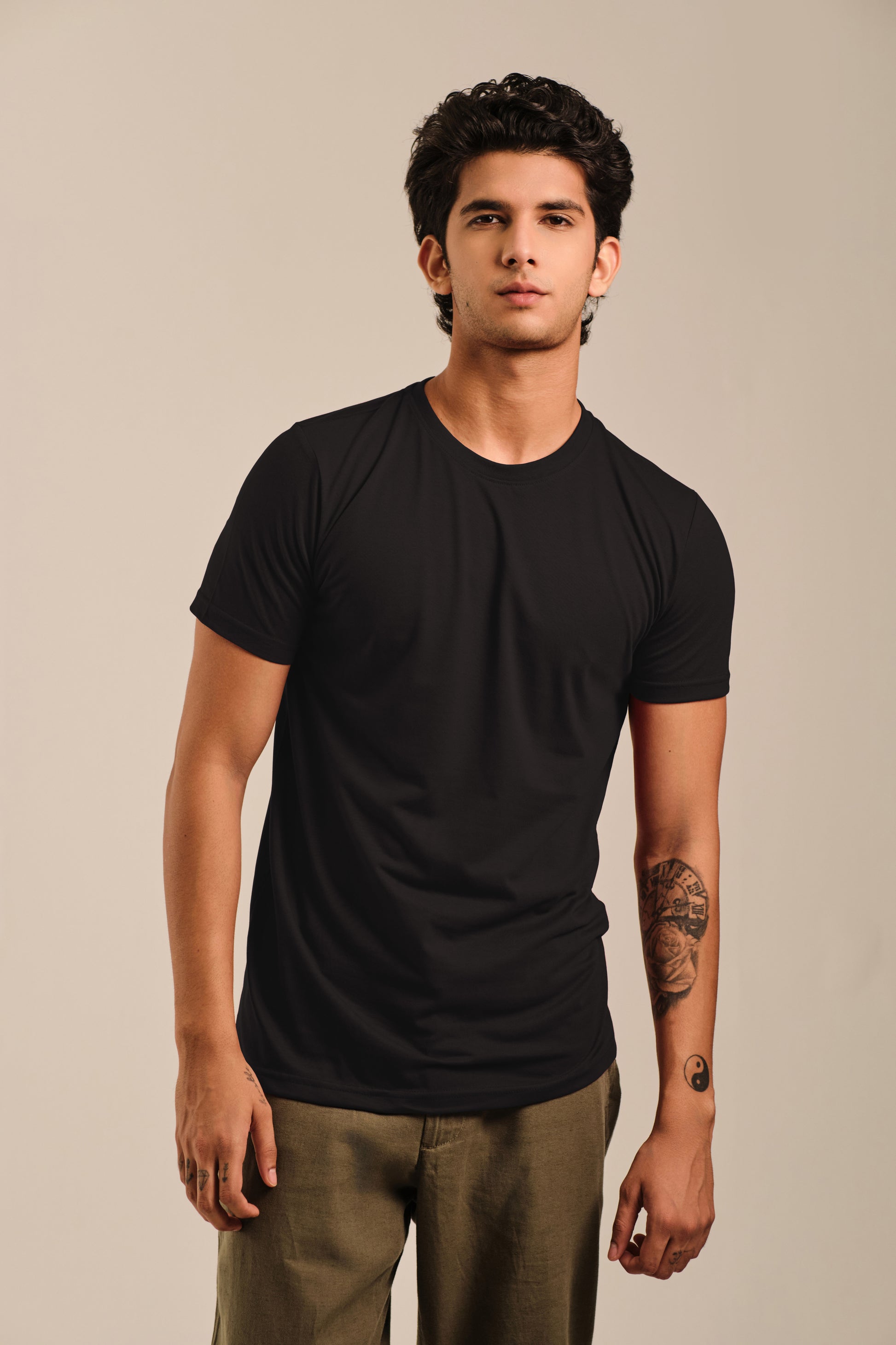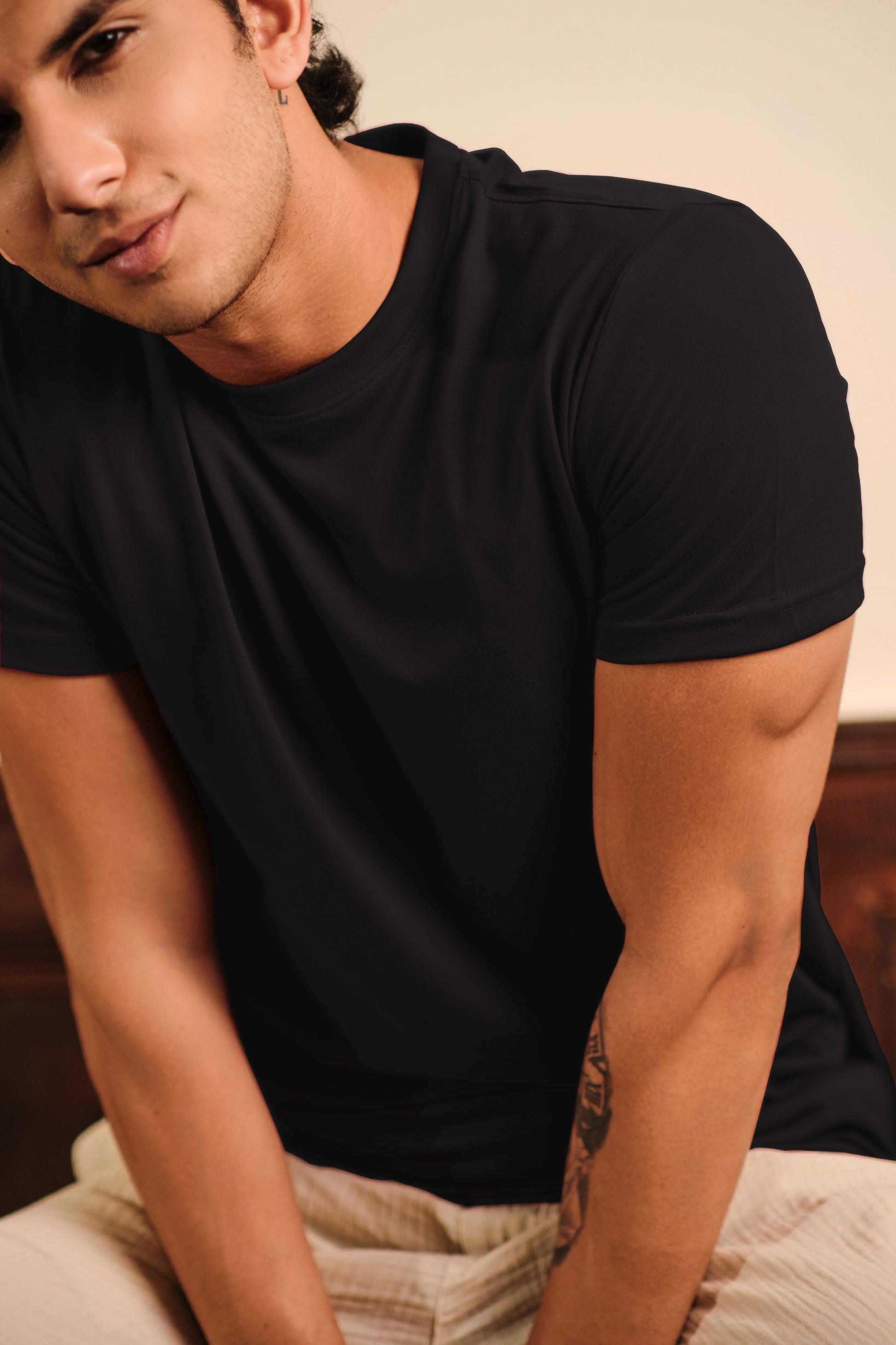Men's Round Neck Solid T-Shirt - Regular Fit Rich Cotton - Black