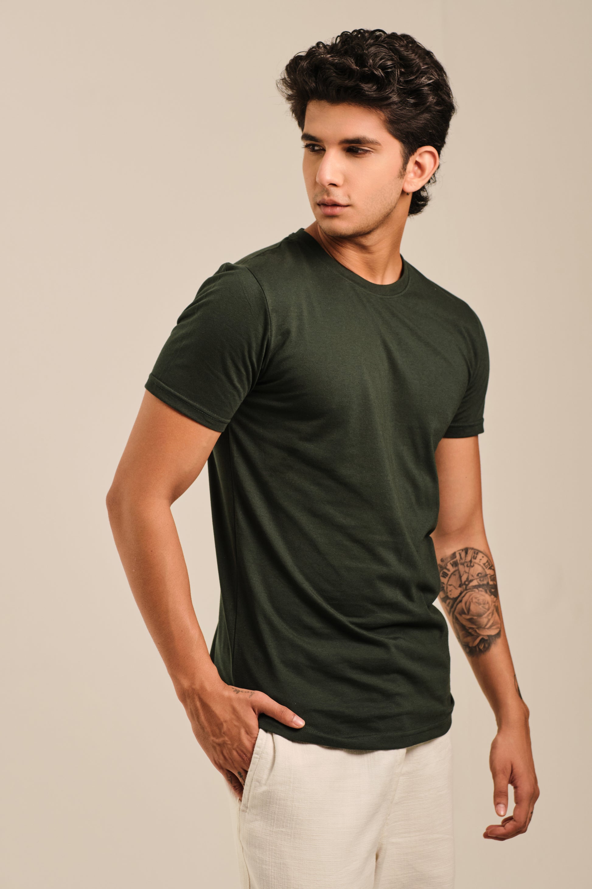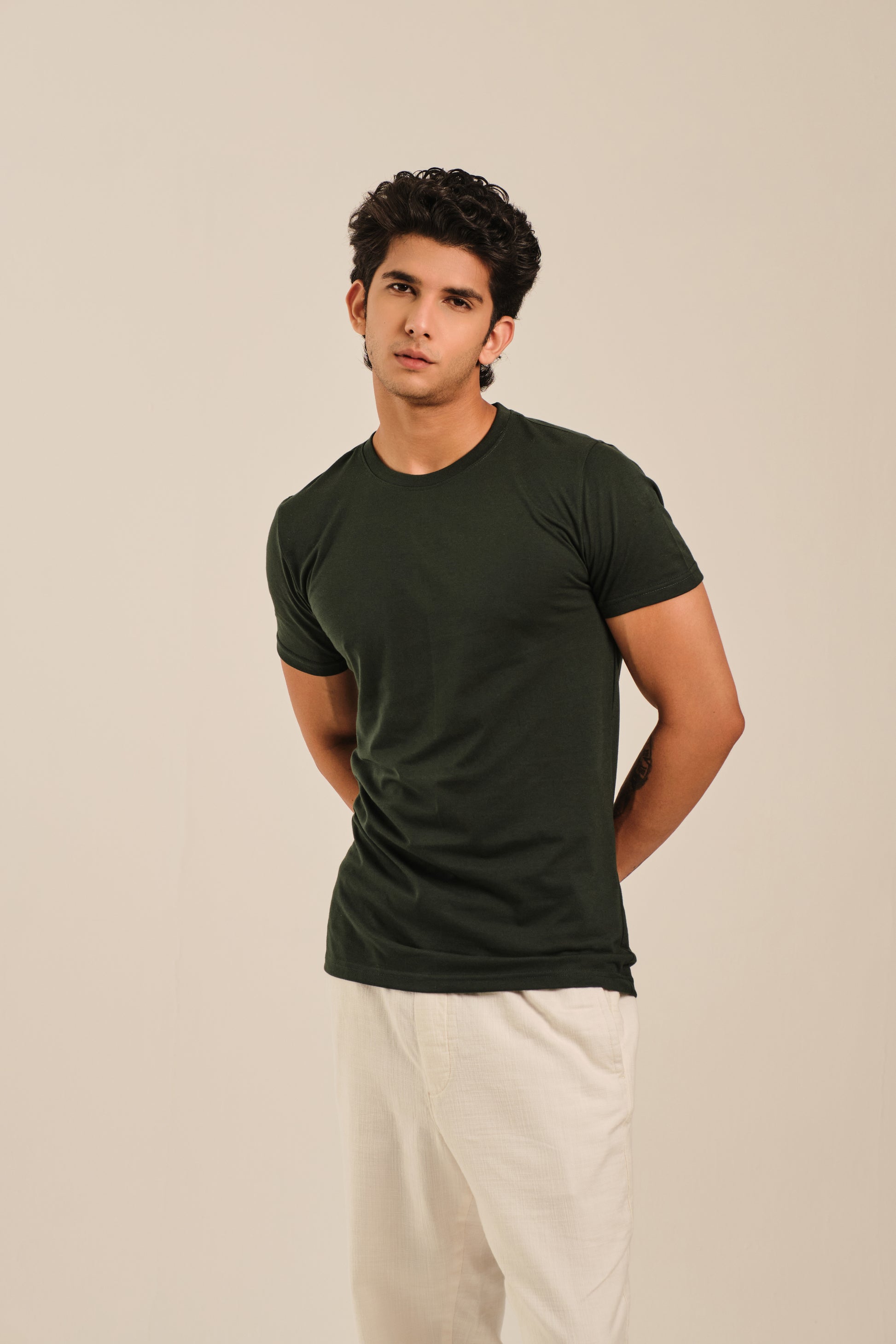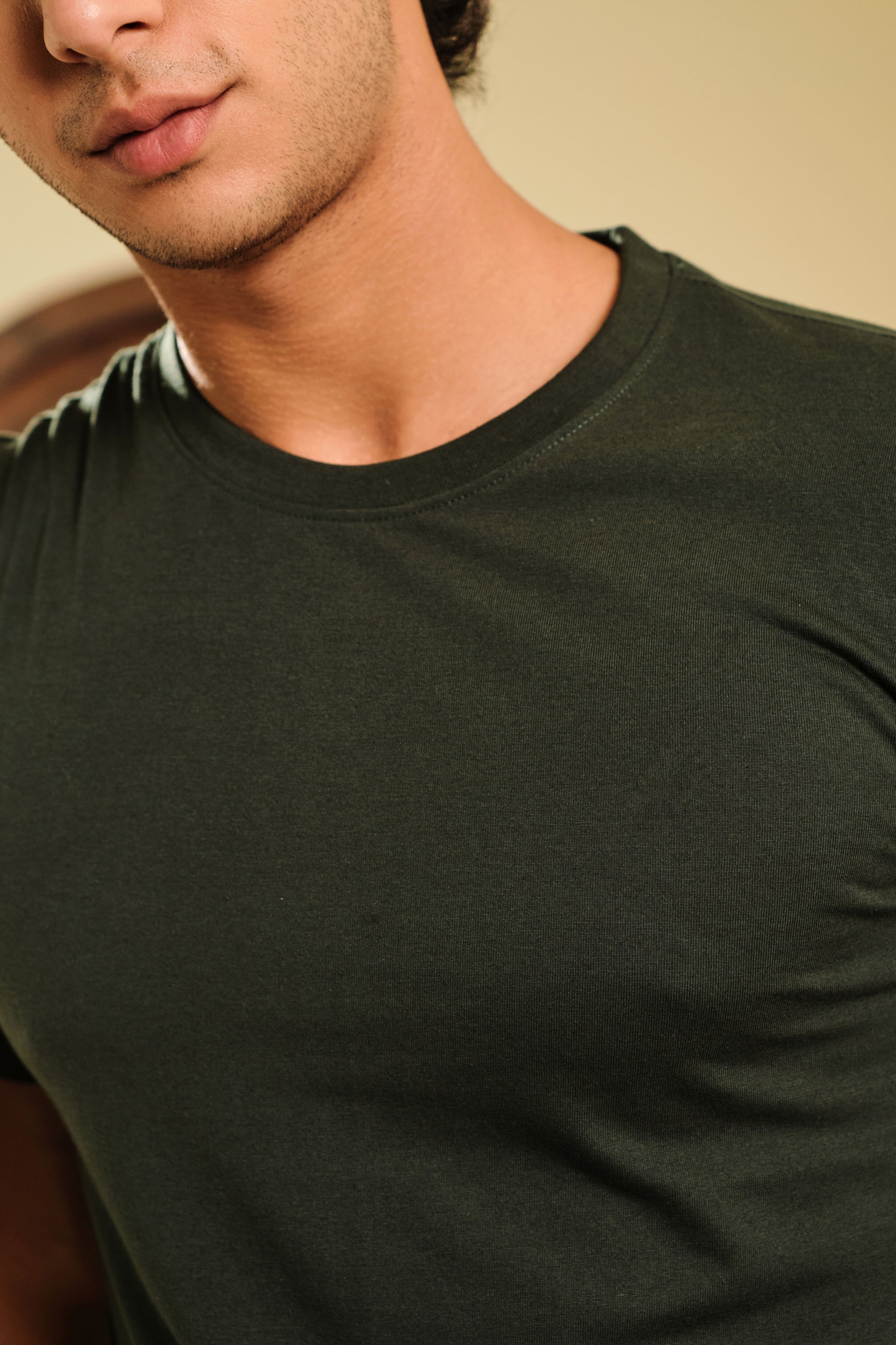 Men's Round Neck Solid T-Shirt - Regular Fit Rich Cotton - Botanic Green
