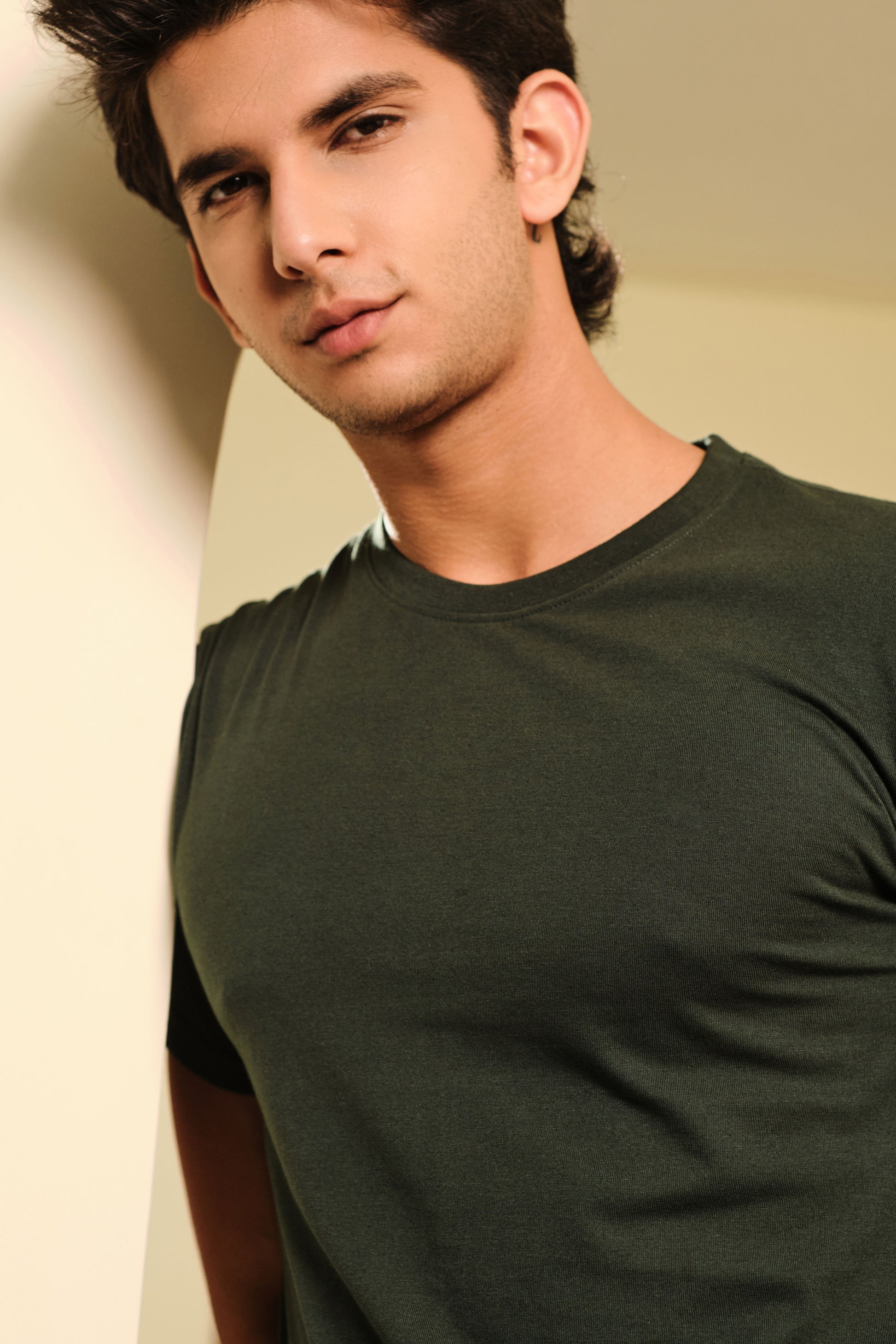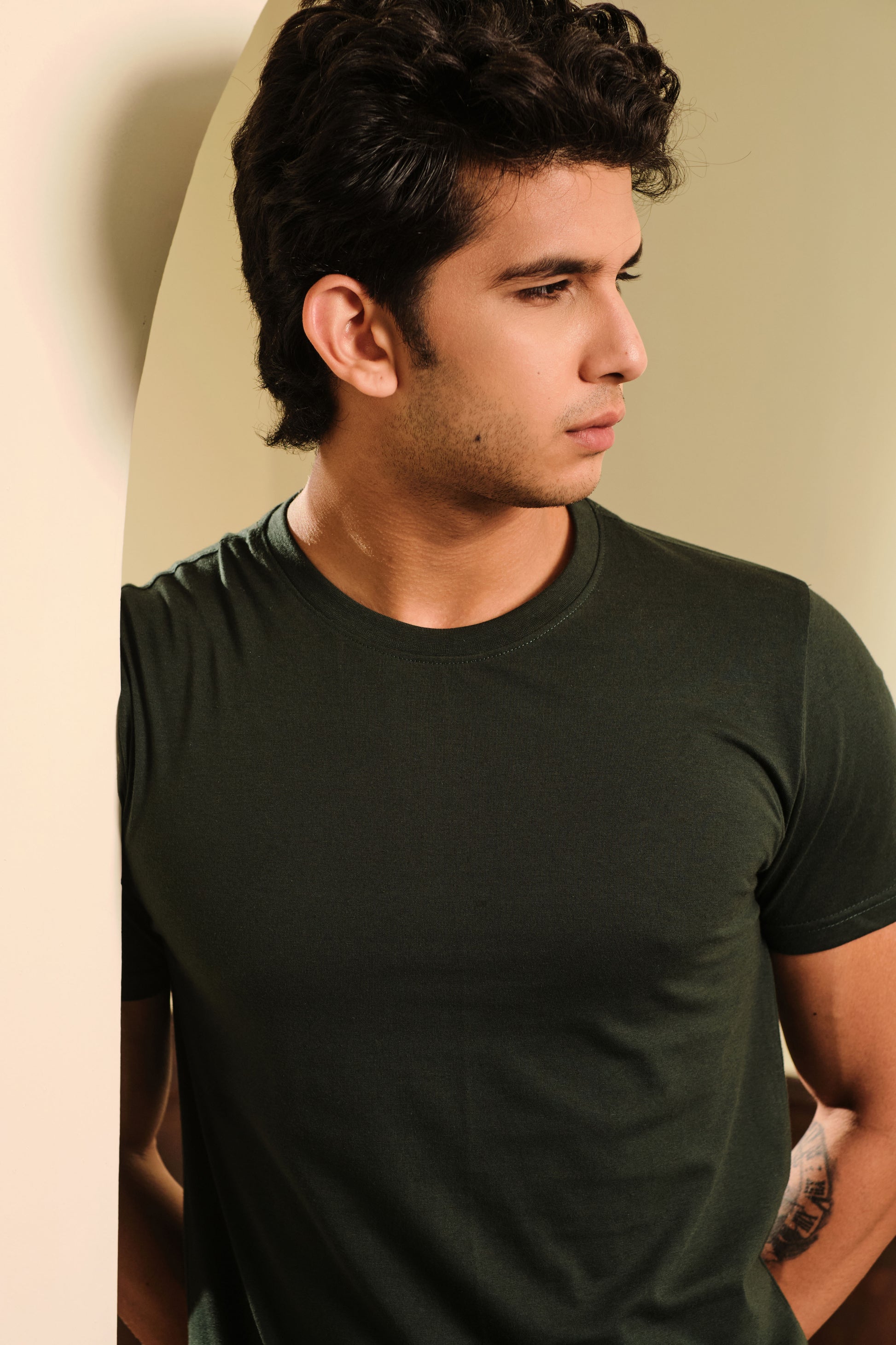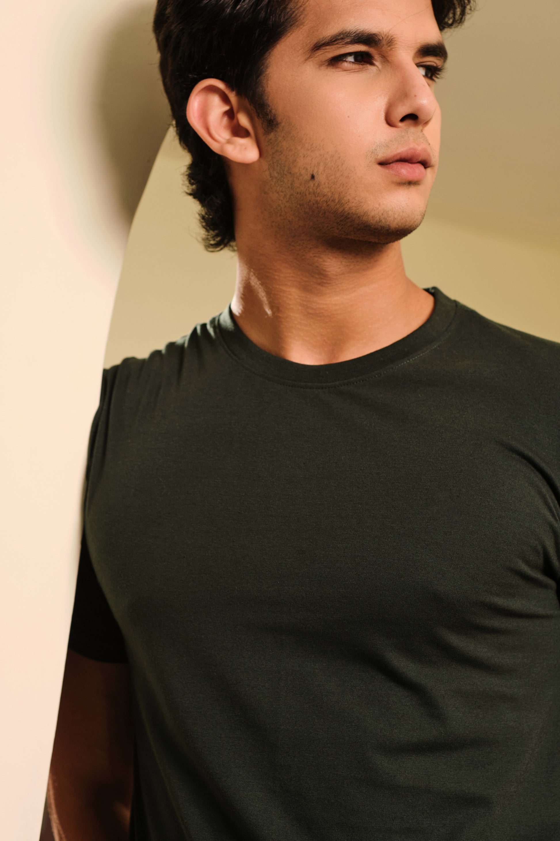 Men's Round Neck Solid T-Shirt - Regular Fit Rich Cotton - Botanic Green