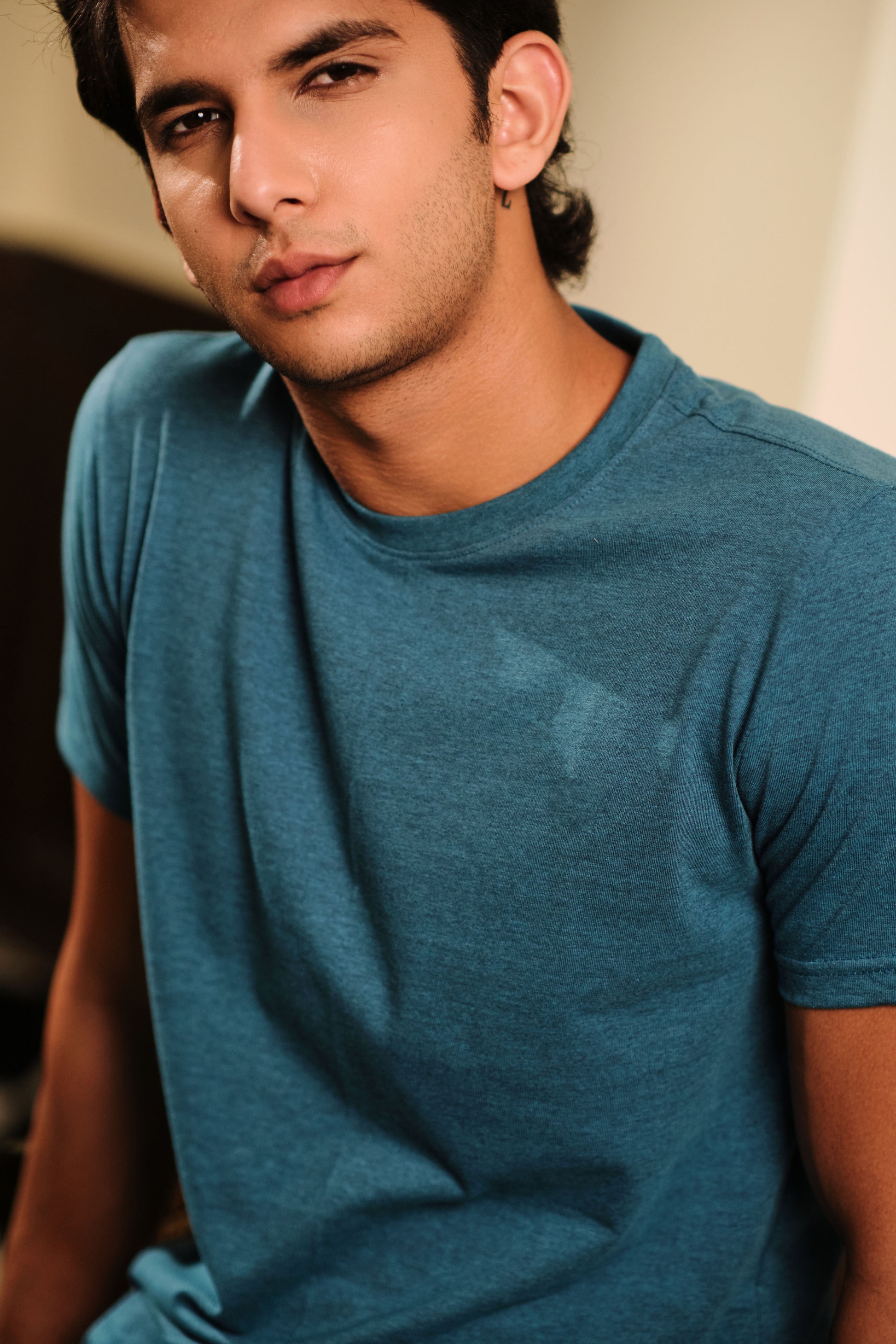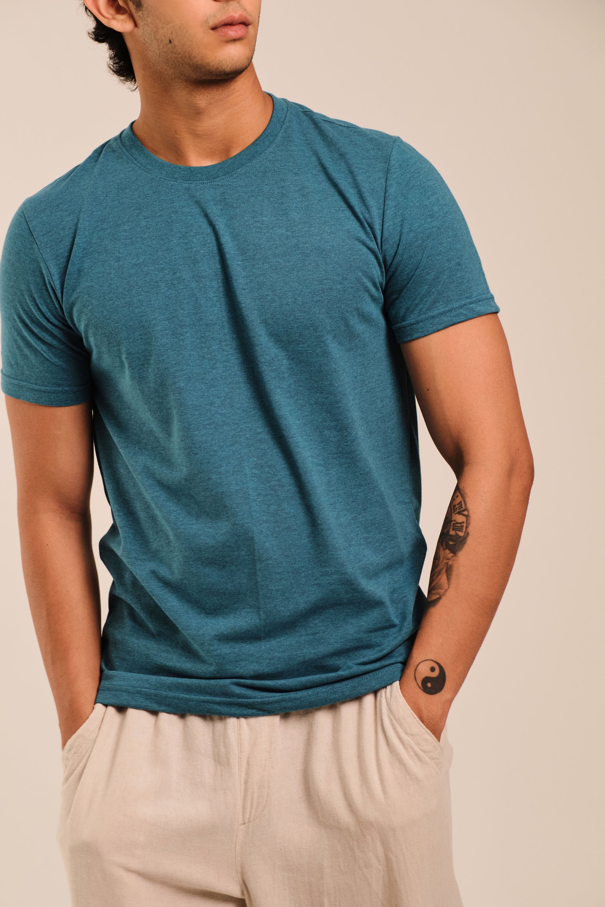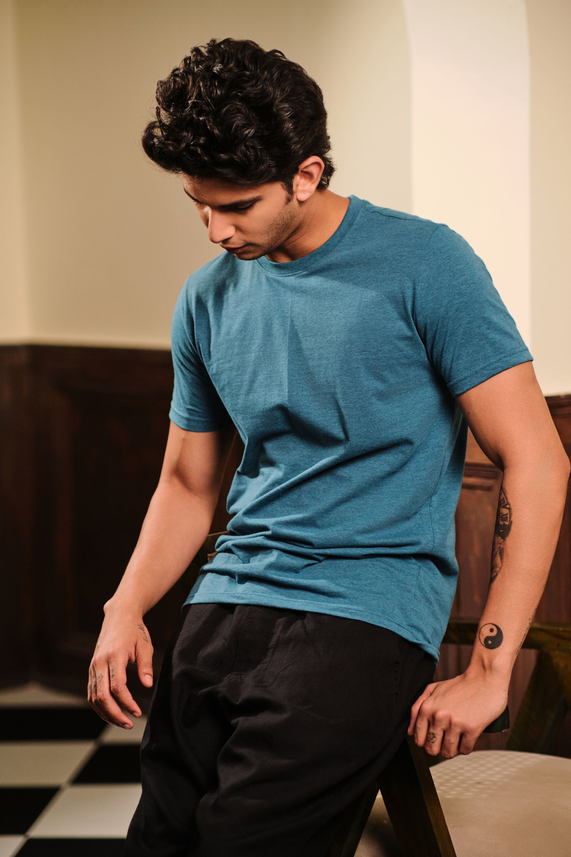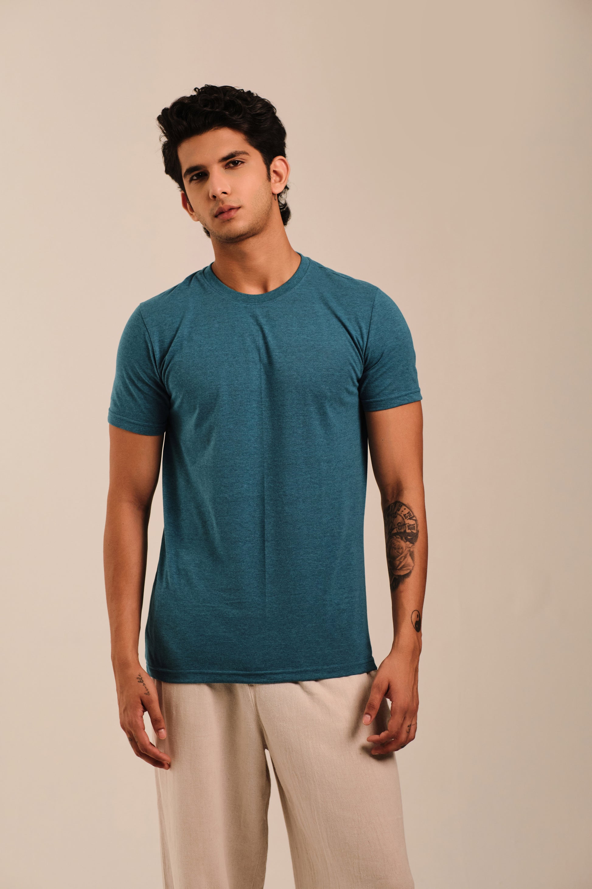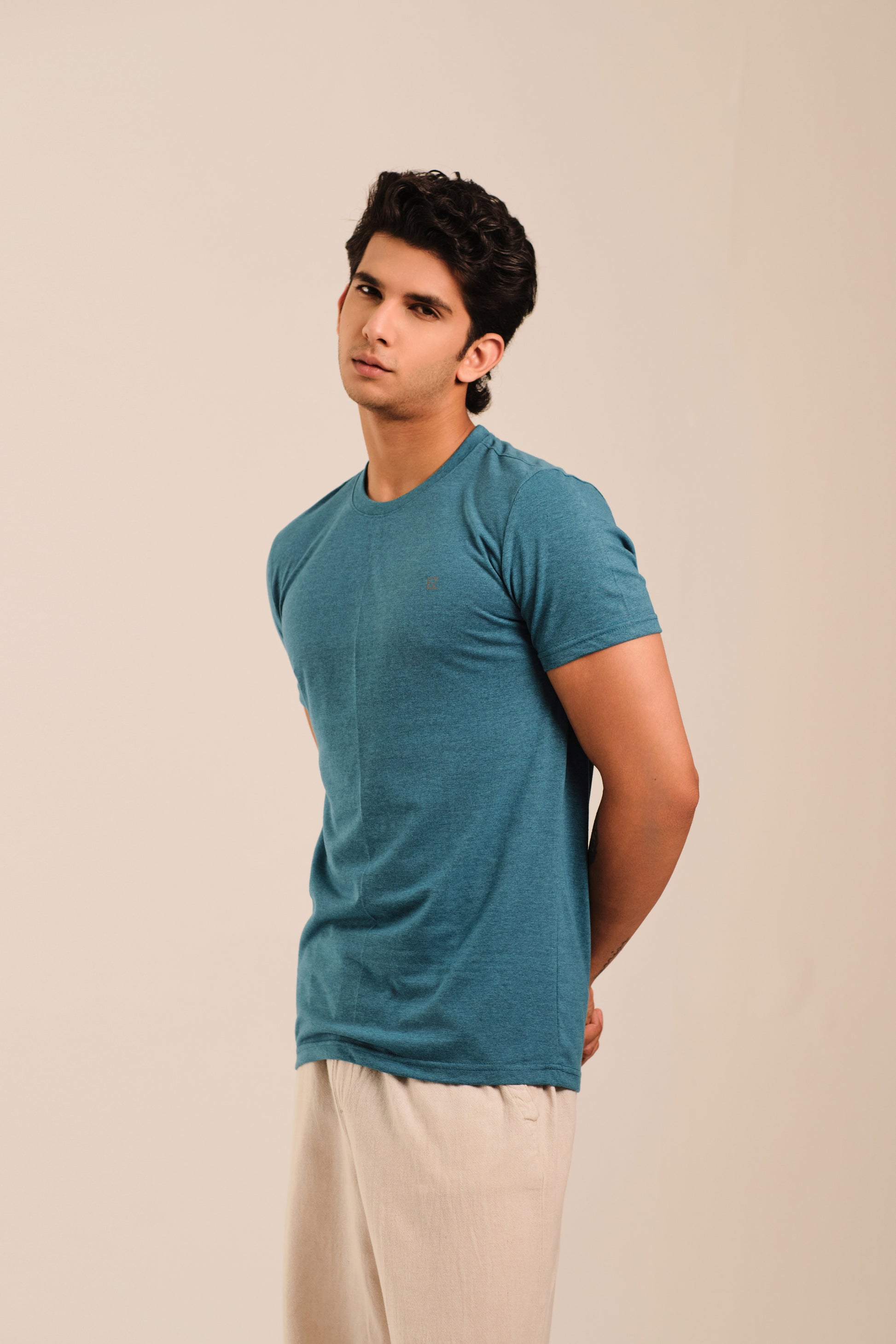 Men's Round Neck Solid T-Shirt - Regular Fit Rich Cotton - Indigo Haze