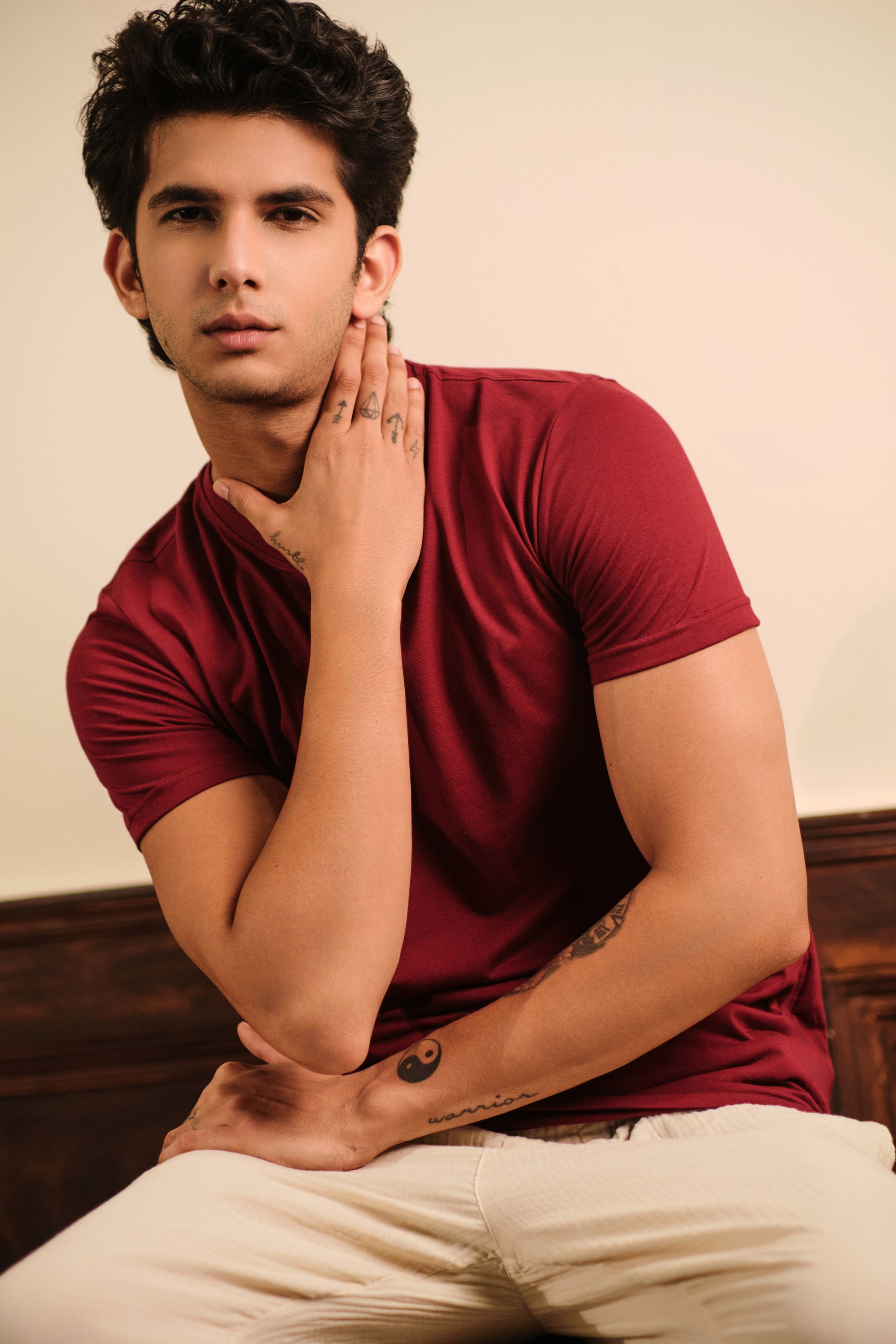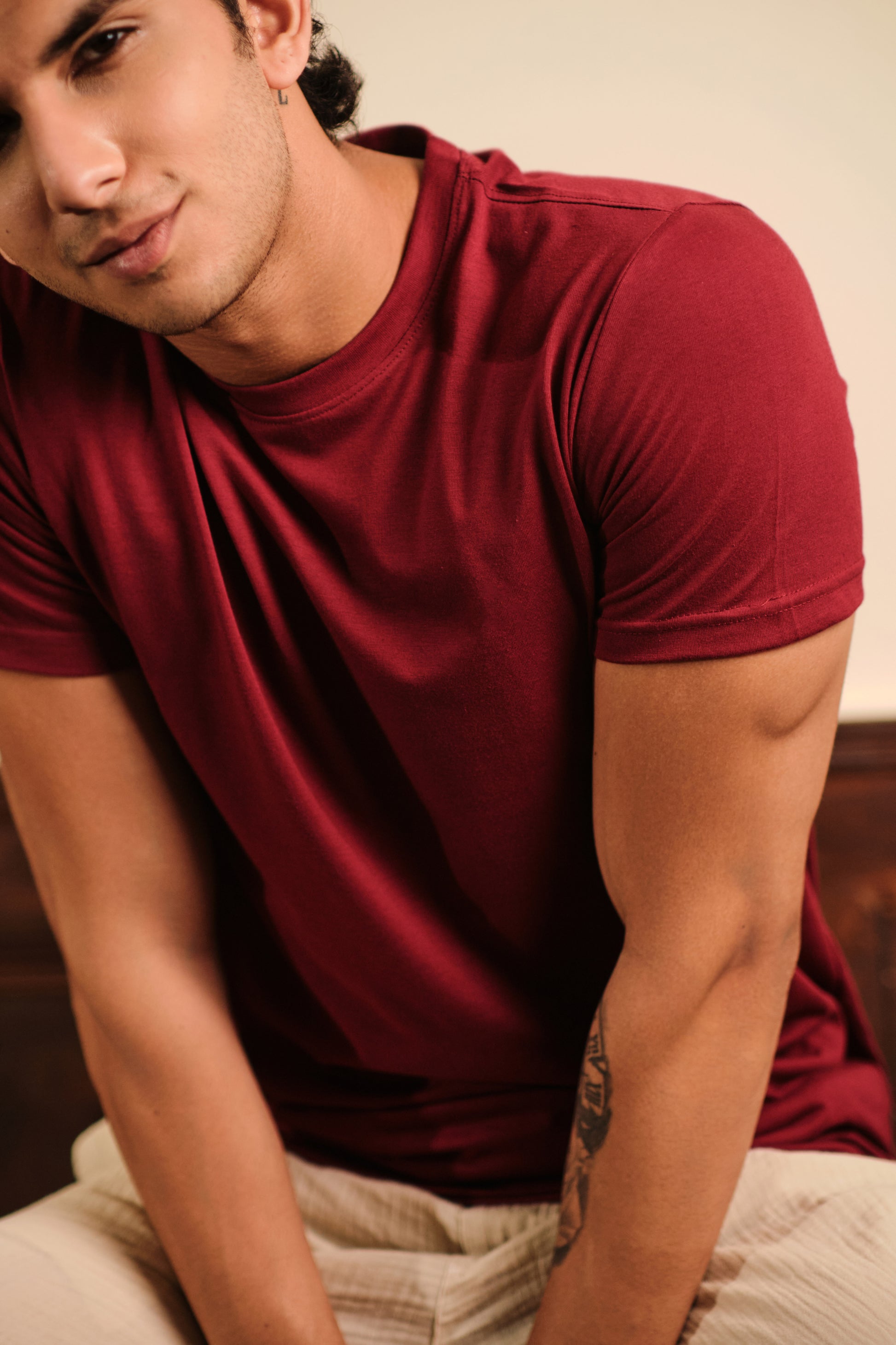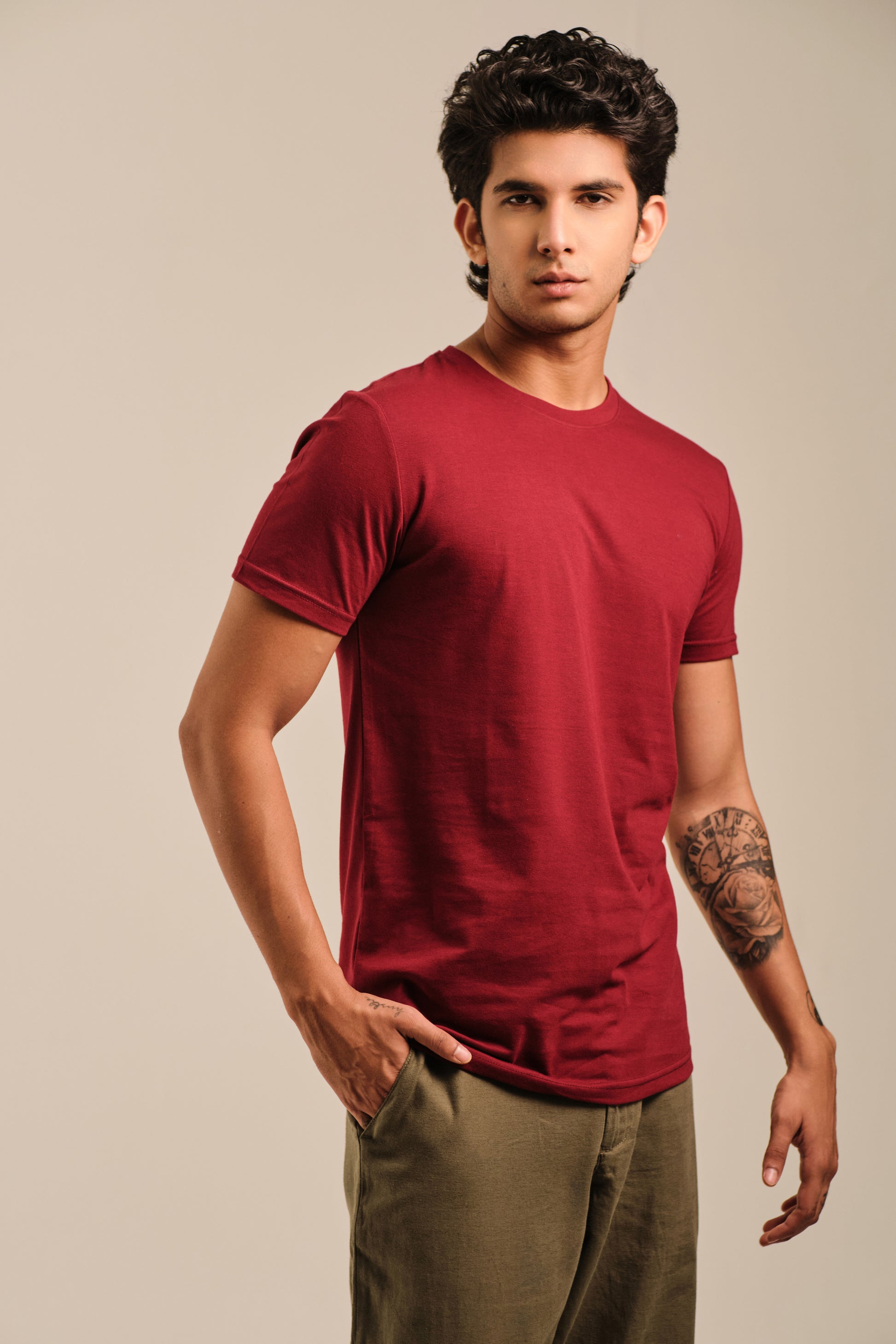 Men's Round Neck Solid T-Shirt - Regular Fit Rich Cotton - Maroon