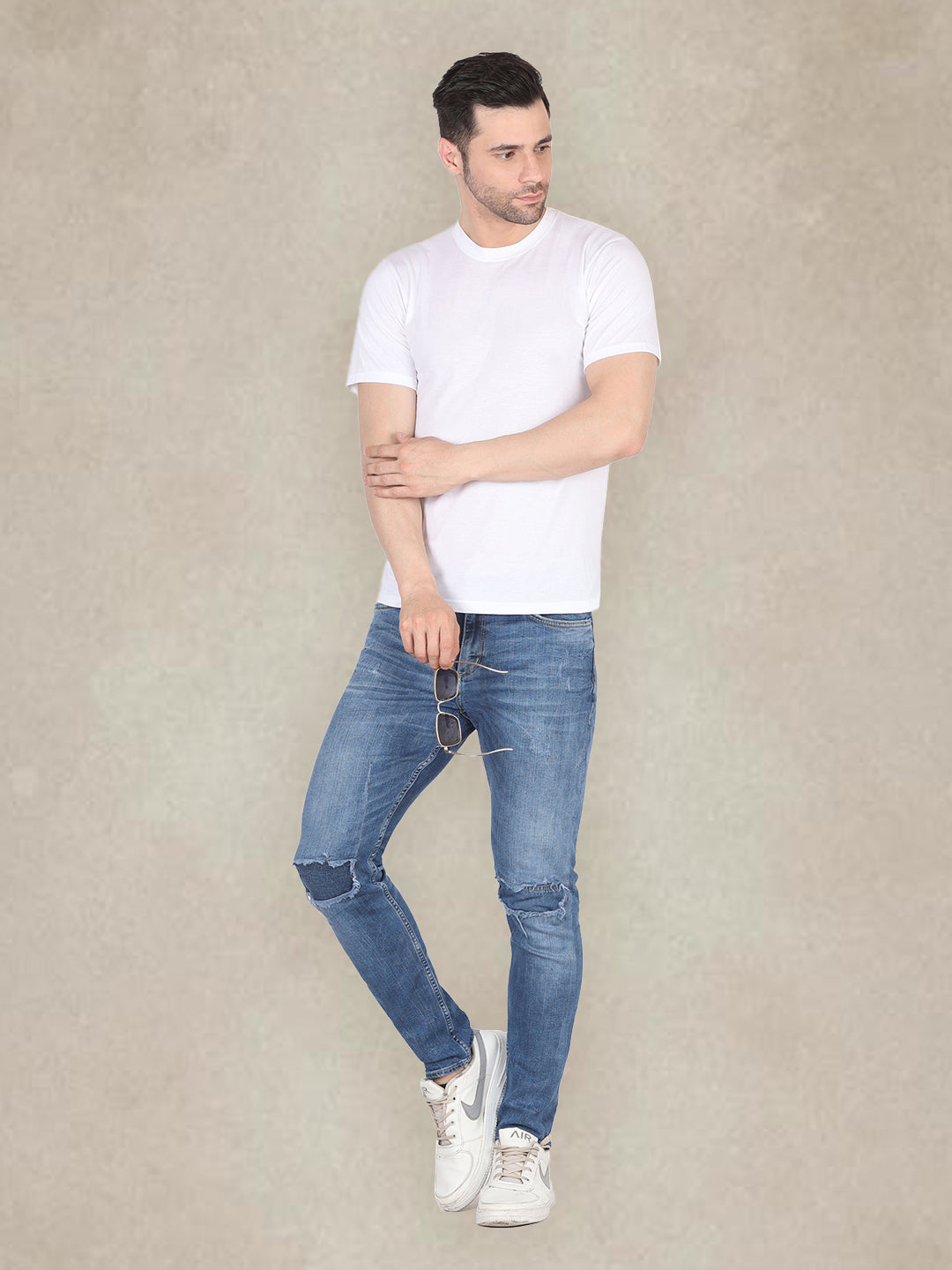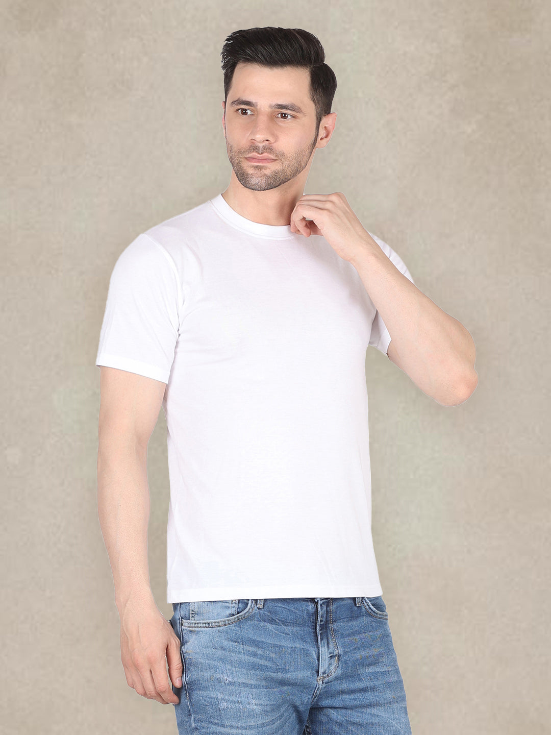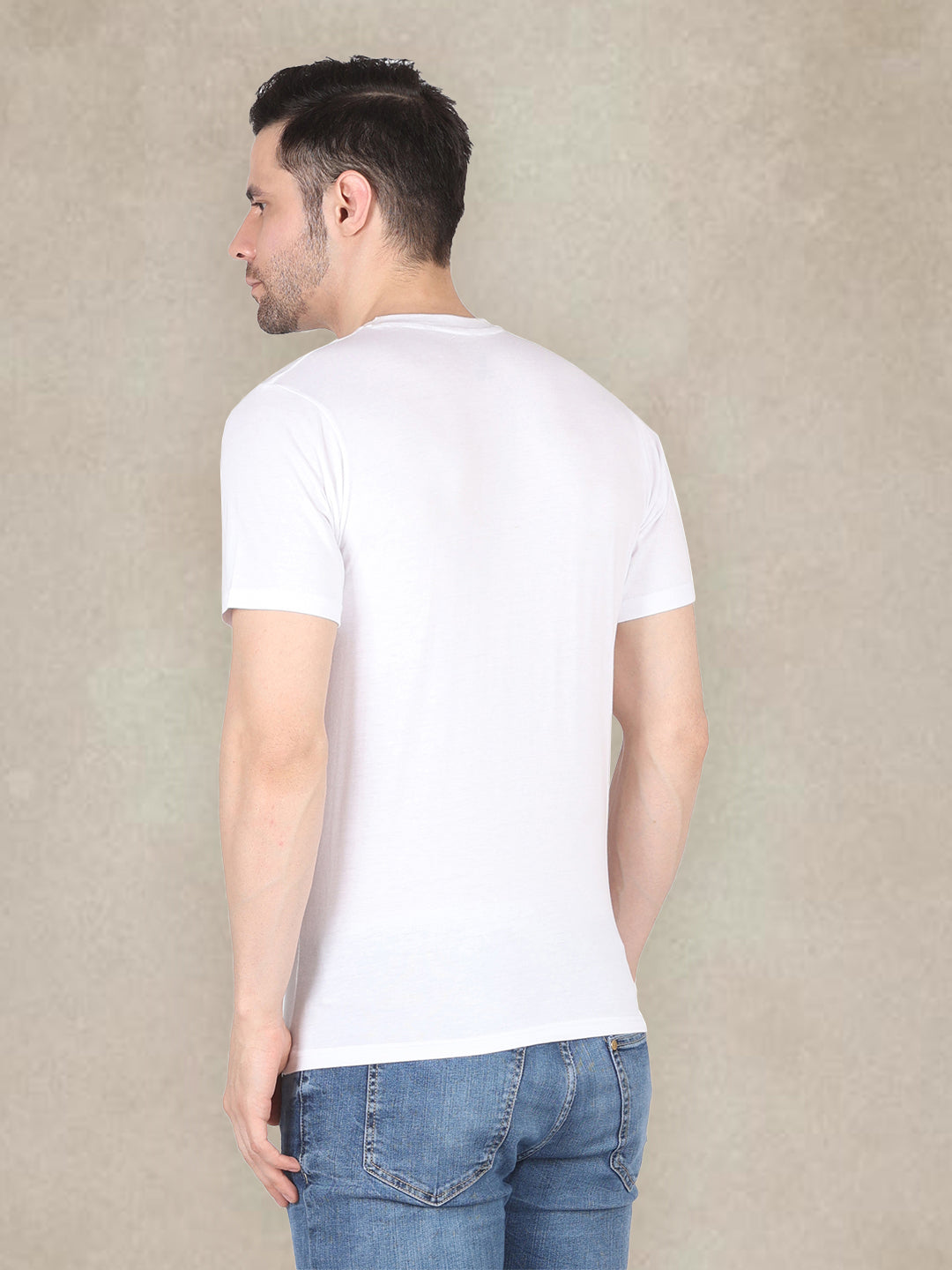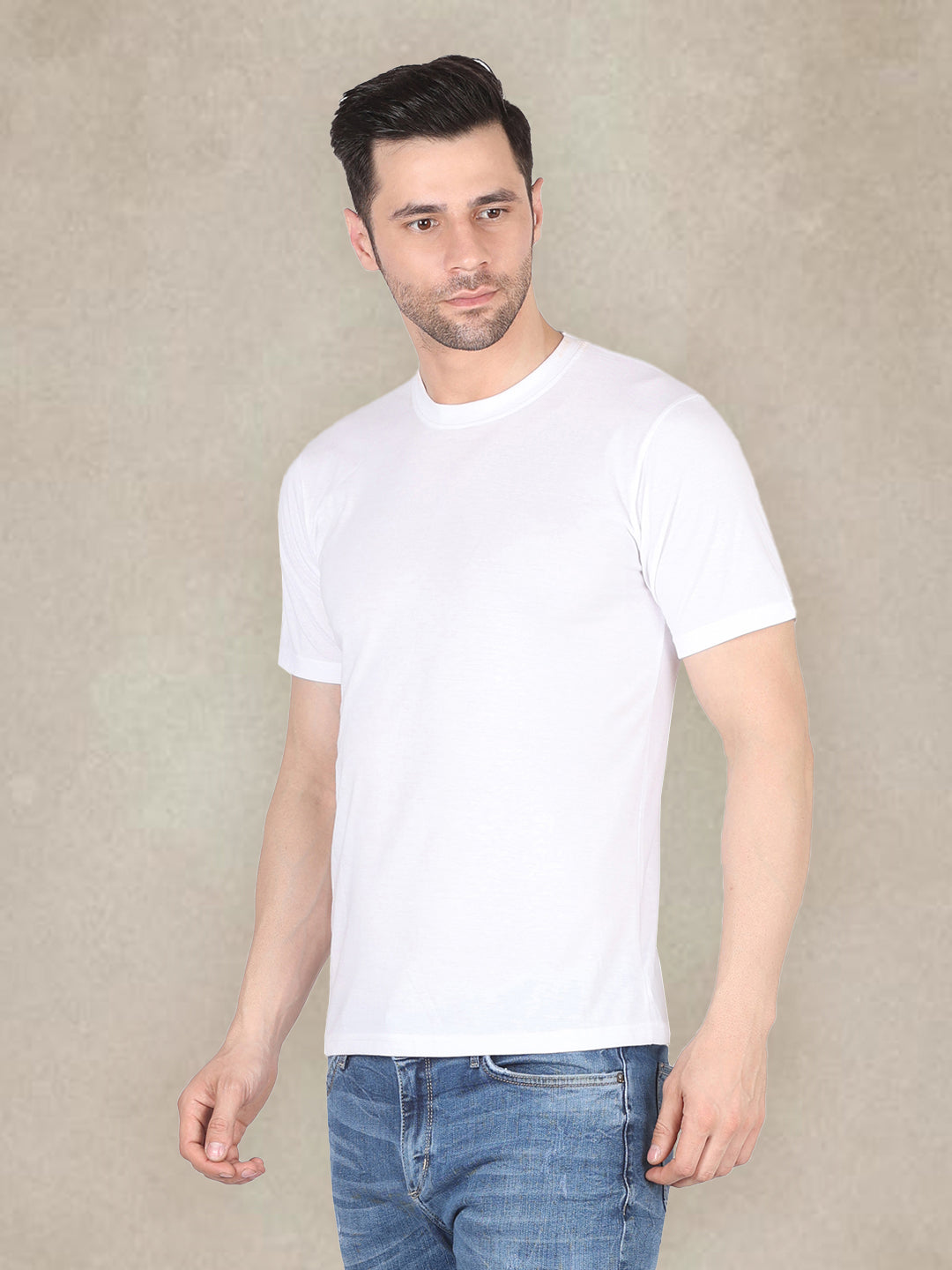 Men's Round Neck Solid T-Shirt - Regular Fit Rich Cotton - White