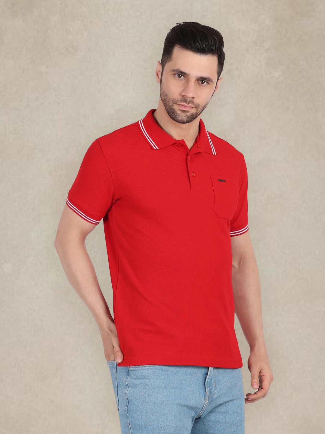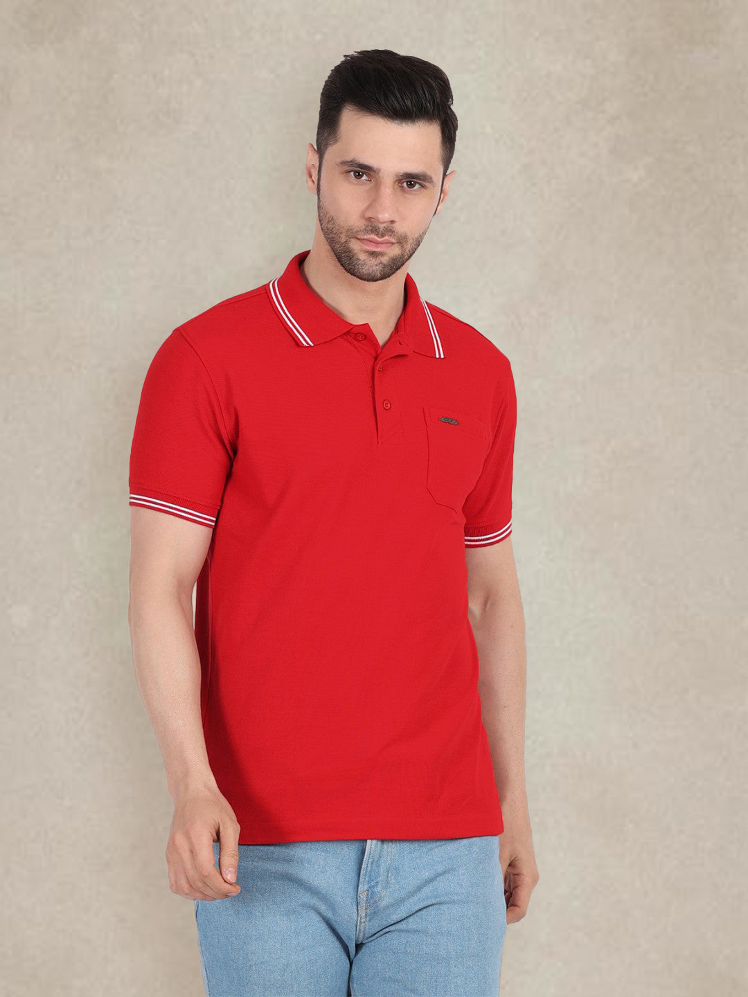 Men's Special Pocket Polo T-Shirt - Regular Fit Rich Cotton Blend - Bright Red