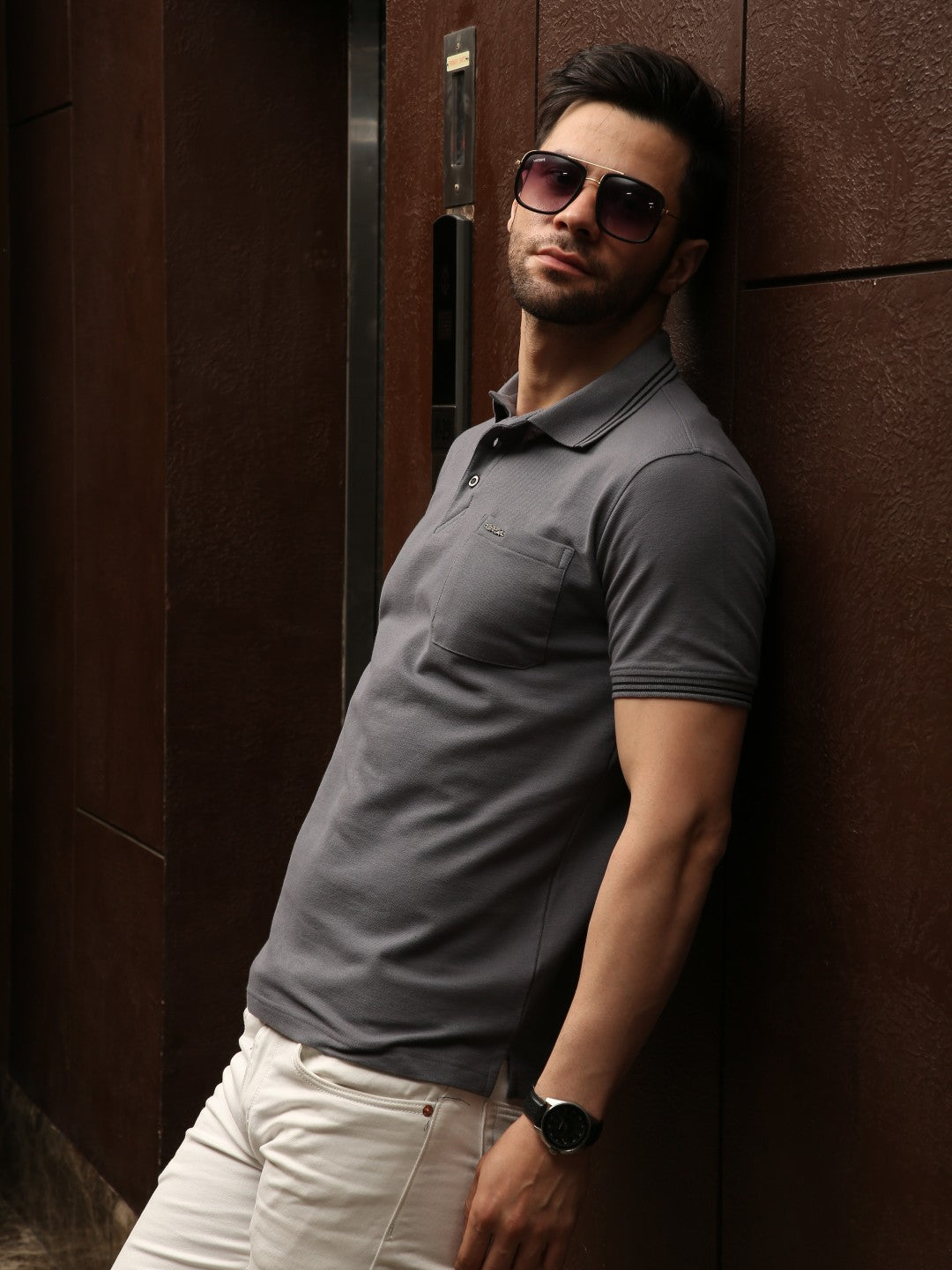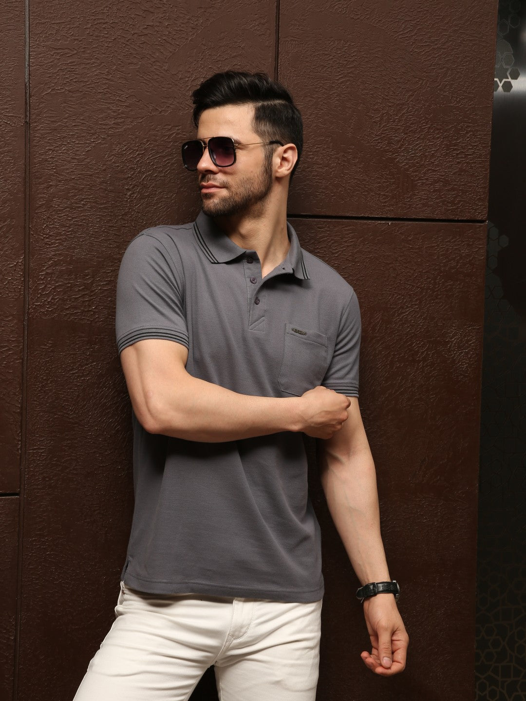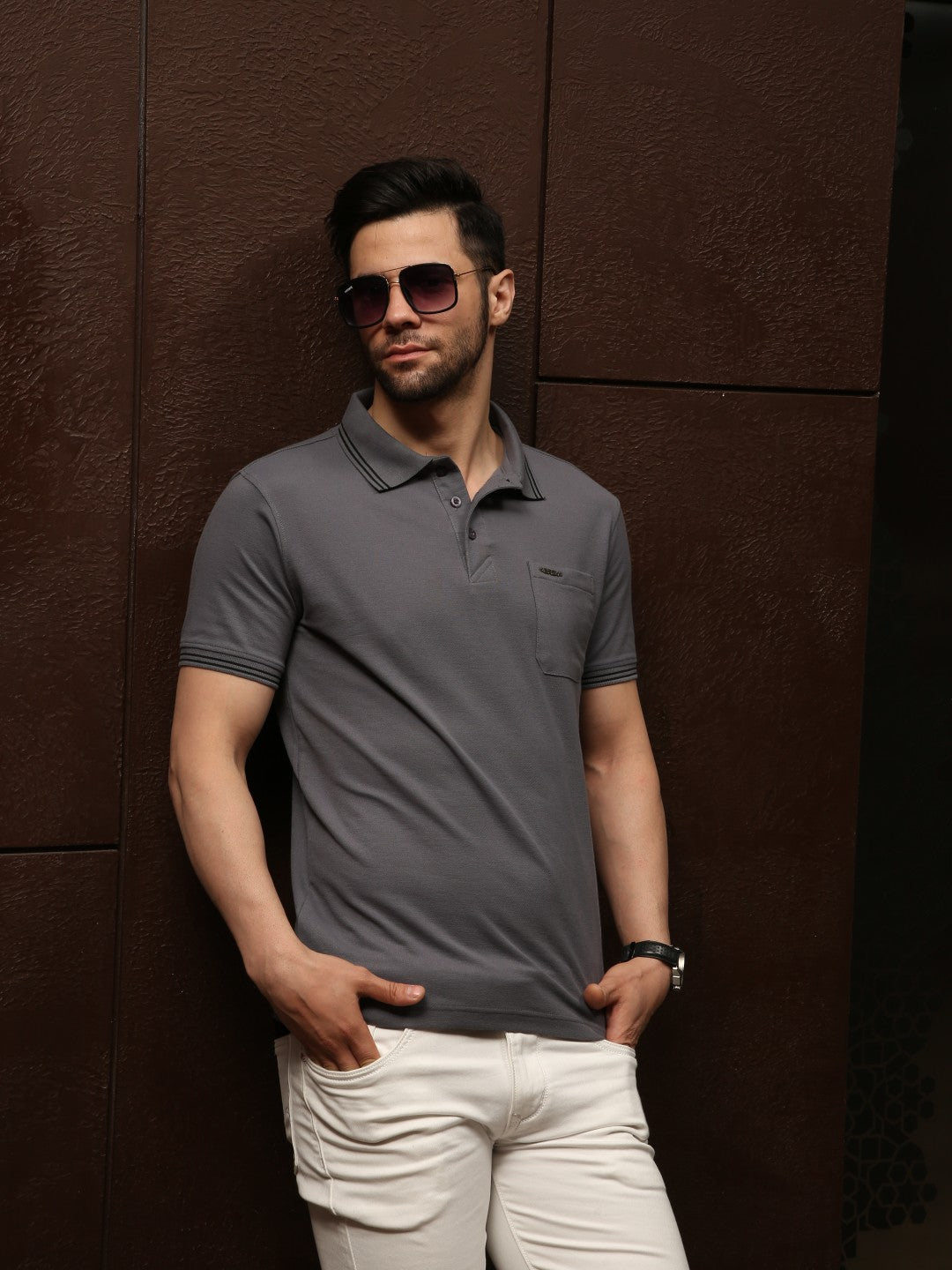 Men's Special Pocket Polo T-Shirt - Regular Fit Rich Cotton Blend - Grey