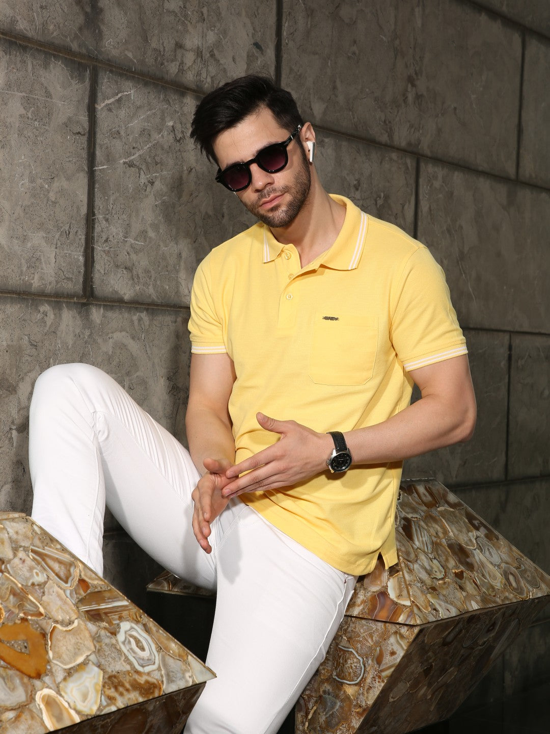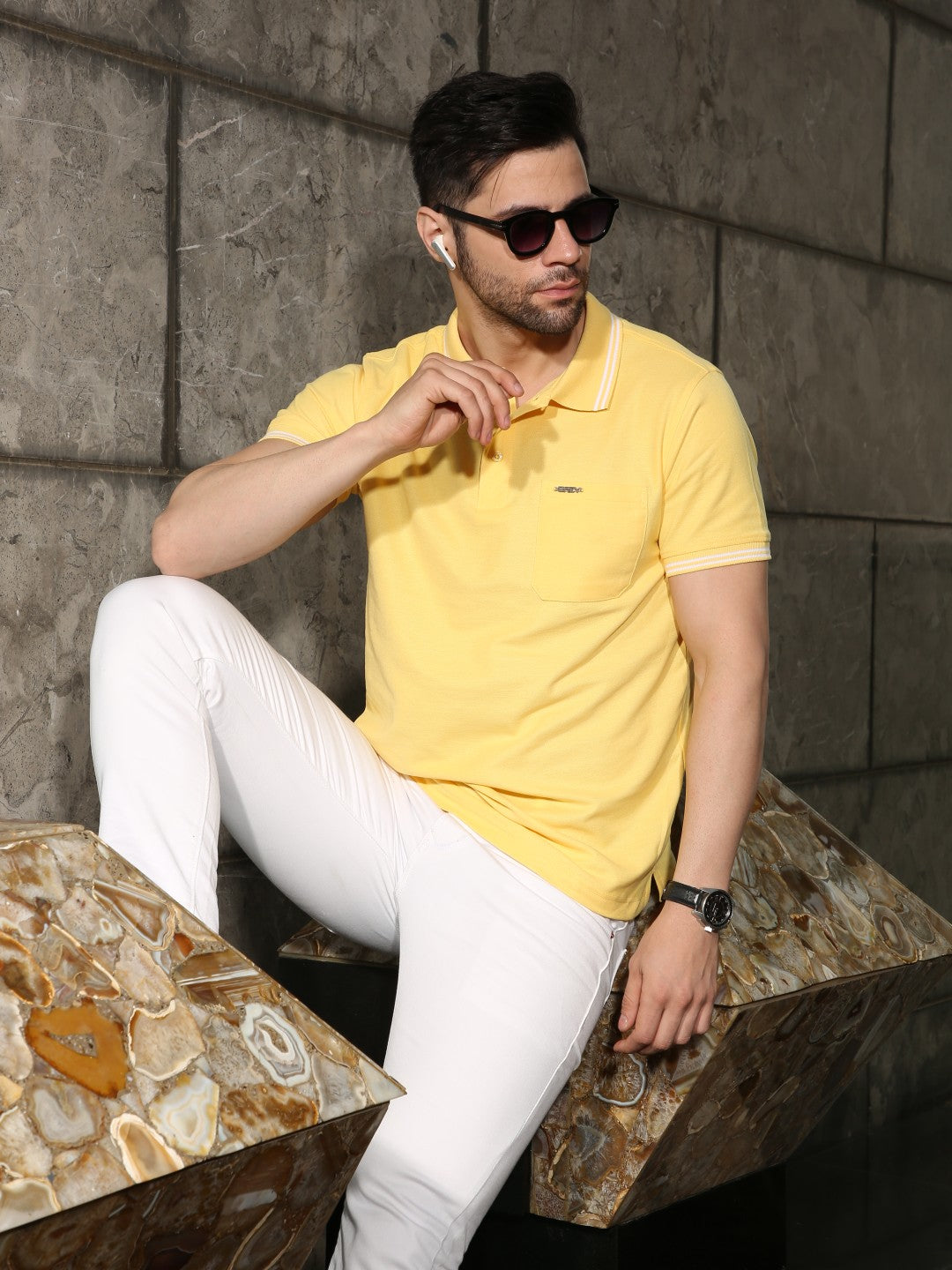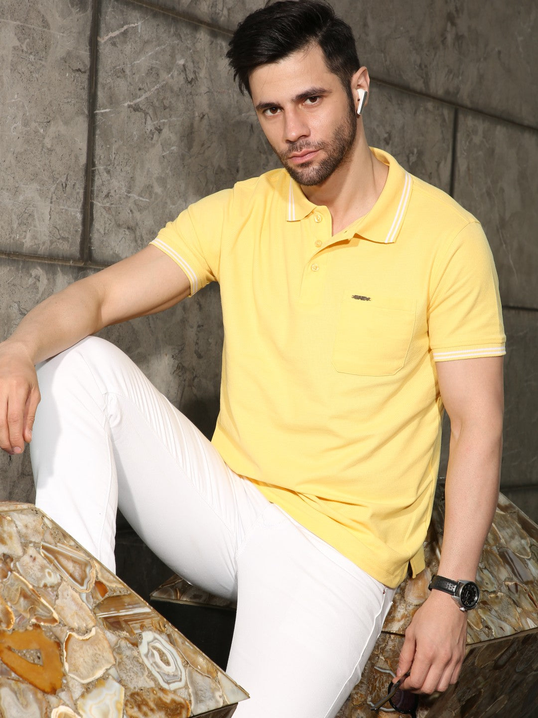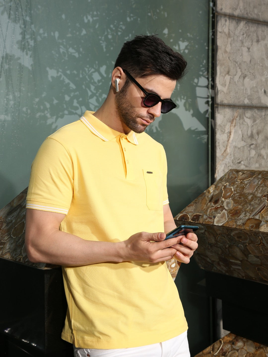 Men's Special Pocket Polo T-Shirt - Regular Fit Rich Cotton Blend - Lemon Yellow