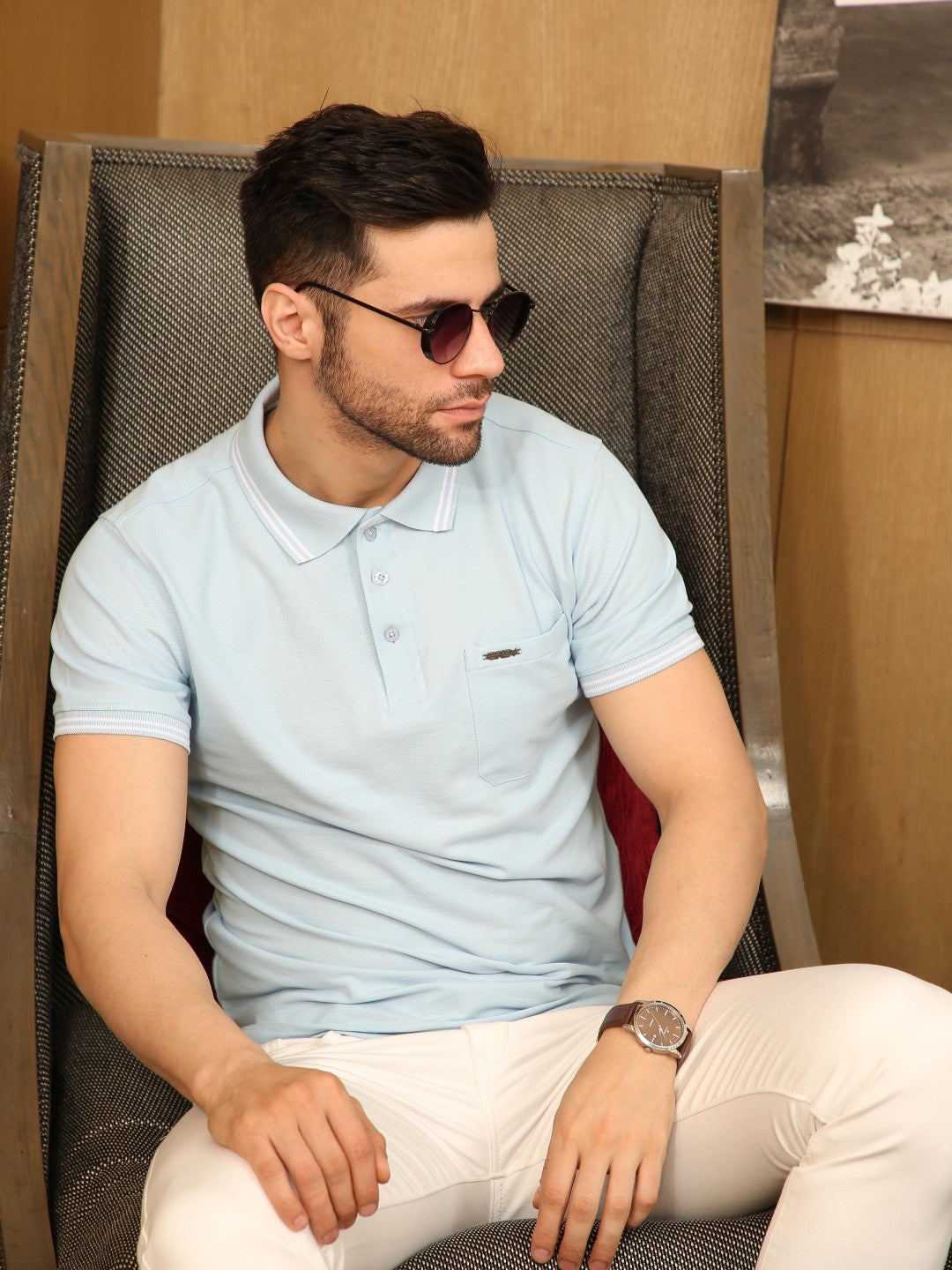 Men's Special Pocket Polo T-Shirt - Regular Fit Rich Cotton Blend - Sky Blue