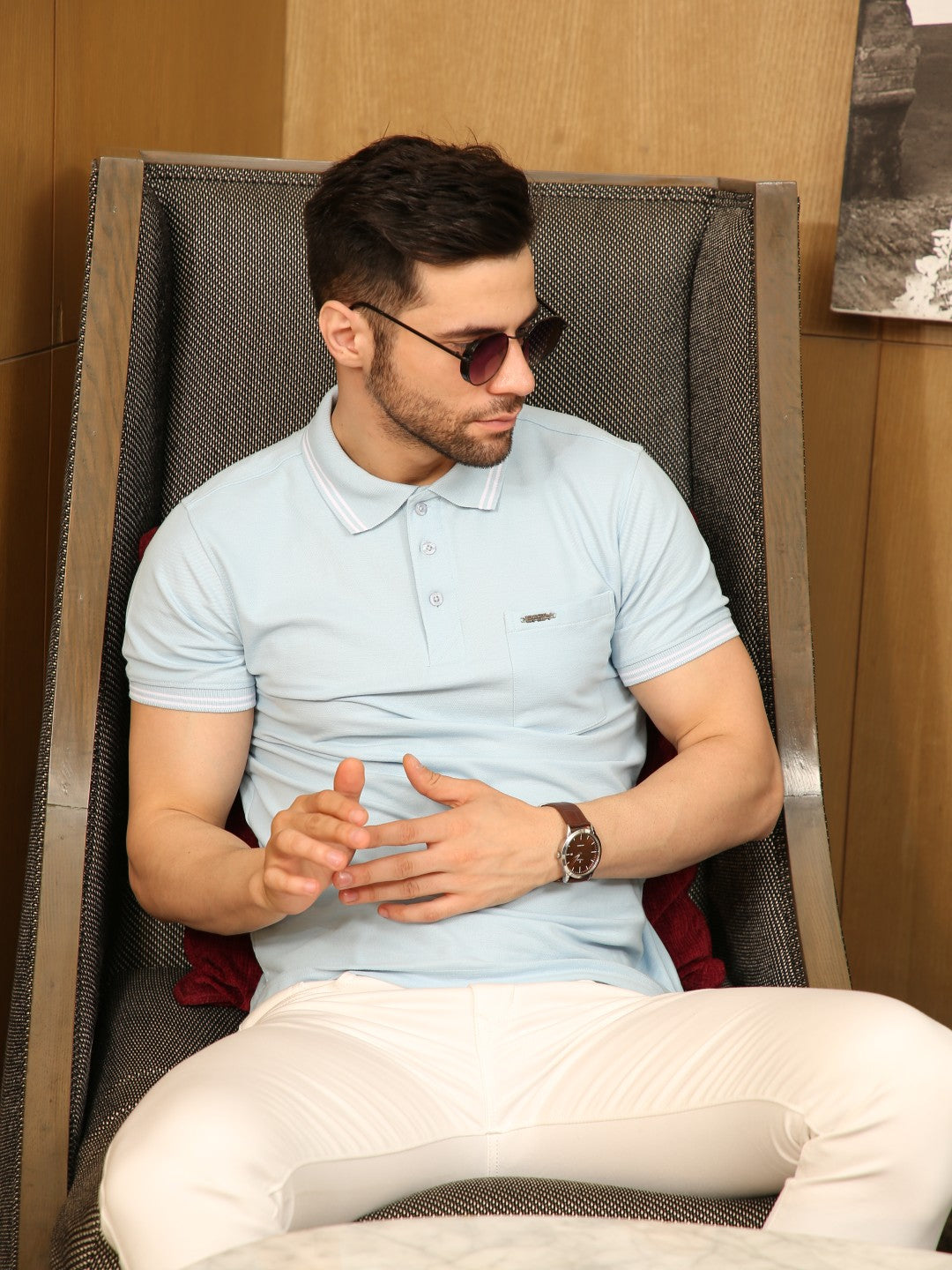 Knitique Men's Luxury Polo T-Shirt - Regular Fit Cotton Rich Tri-Blend Fabric - Celeste Powder Blue Celeste Powder Blue30% OFFRegular price ₹1,599.00Sale price ₹1,599.00 Regular priceUnit price / per₹2,299.00Sale