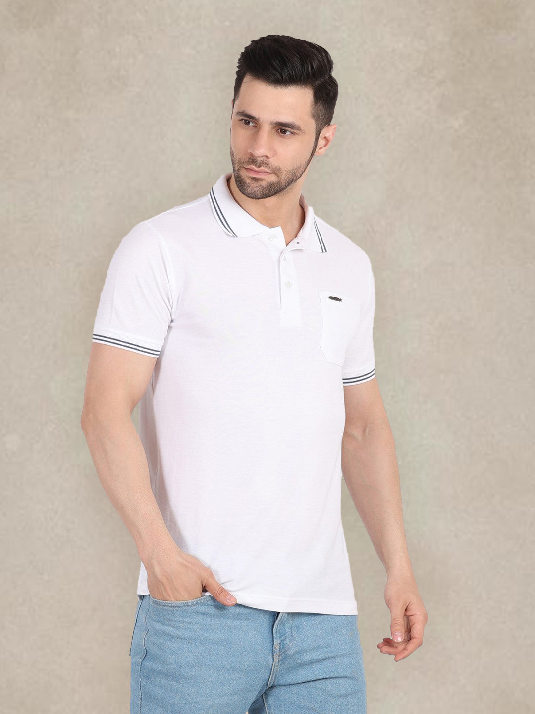Men's Special Pocket Polo T-Shirt - Regular Fit Rich Cotton Blend - White