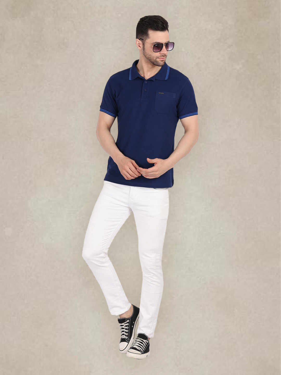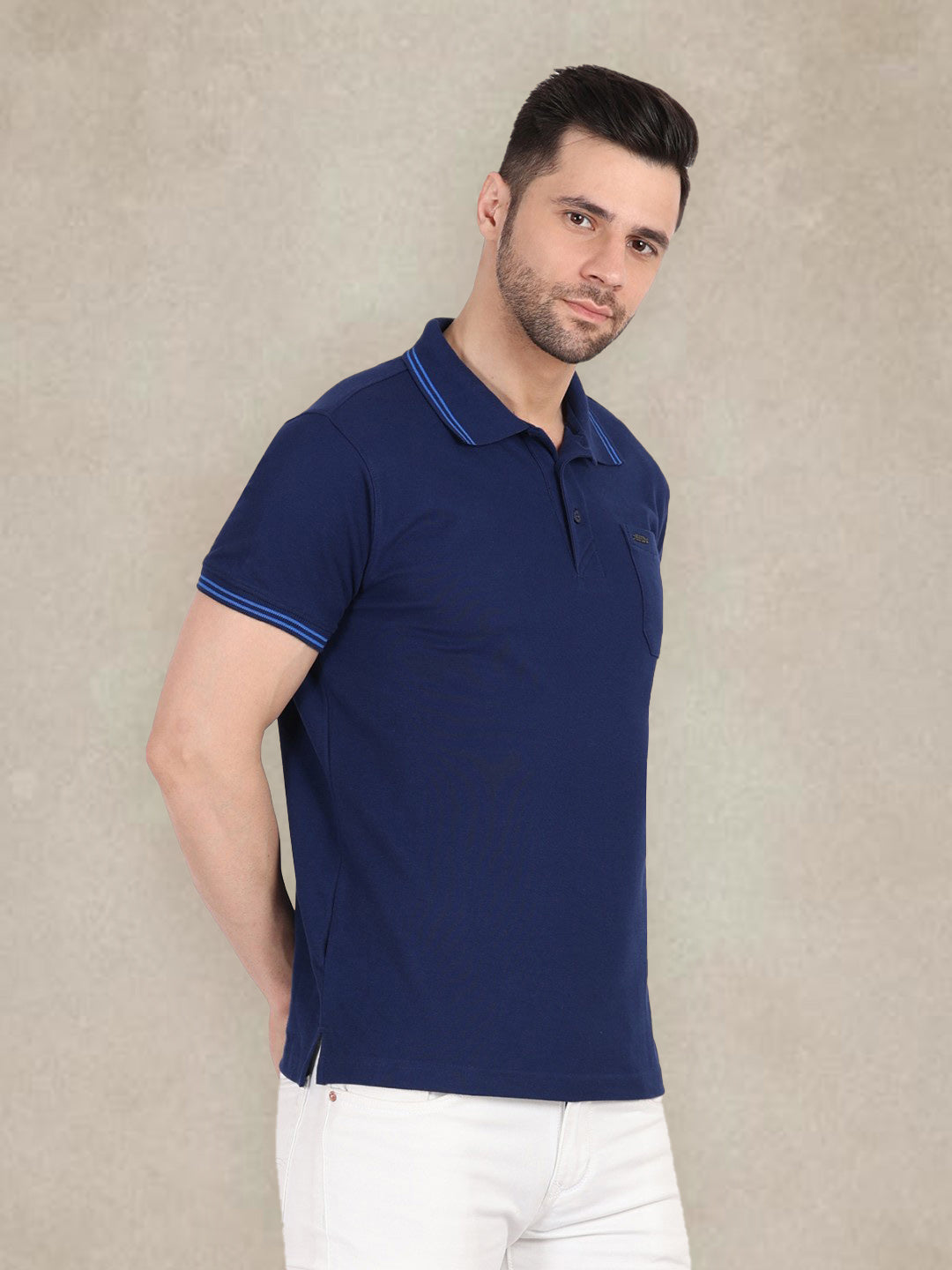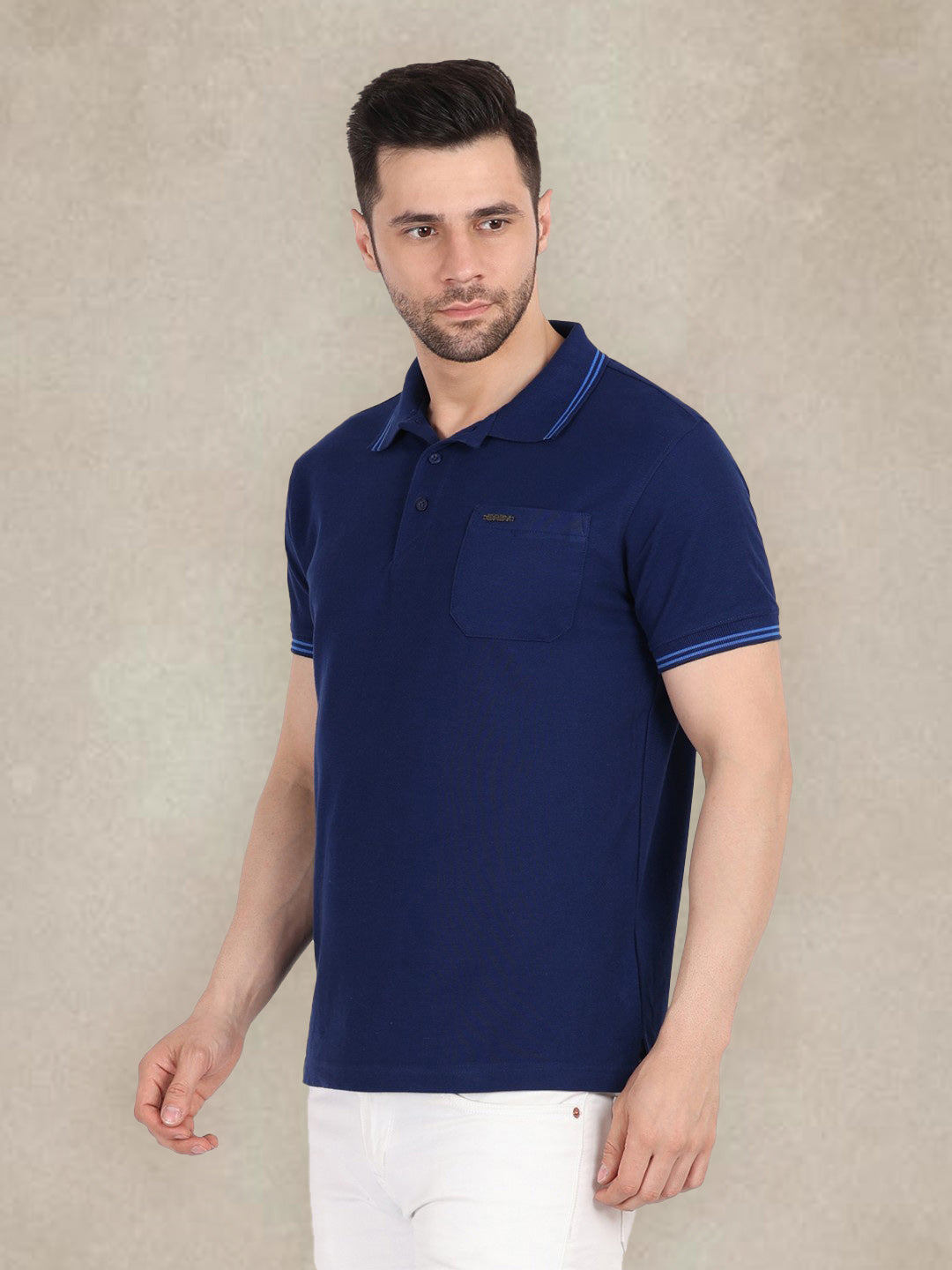 Men's Special Pocket Polo T-Shirt - Regular Fit Rich Cotton Blend - Young Navy